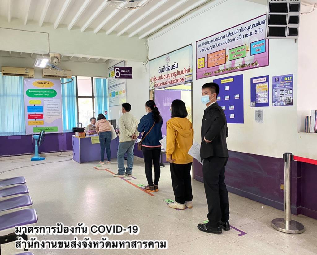 ในส่วนของ การให้บริการที่สำนักงานขนส่งทุกแห่ง มีการปรับรูปแบบดำเนินการแบบ New Normal ตามมาตรการด้านสาธารณสุขอย่างเคร่งครัด พร้อมขอความร่วมมือประชาชนสวมหน้ากากอนามัยหรือหน้ากากผ้าในการติดต่อราชการ และปฏิบัติตามคำแนะนำของเจ้าหน้าที่ เพื่อลดความเสี่ยงในการติดต่อแพร่กระจายของโรค อาทิ การจองคิวดำเนินการล่วงหน้าผ่านแอปพลิเคชัน DLT Smart Queue เพื่อบริหารจัดการจำนวนผู้ใช้บริการภายในสำนักงาน ตั้งจุดคัดกรอง ตรวจวัดอุณหภูมิประชาชน ก่อนเข้าอาคารสำนักงาน เว้นระยะห่างของที่นั่งพักคอยของประชาชน กำหนดระยะห่างของตำแหน่งการยืนคอยรับบริการ ติดตั้ง Table Shield กั้นระหว่างผู้มาติดต่อกับเจ้าหน้าที่ ประชาสัมพันธ์การใช้บริการชำระภาษีรถประจำผ่านช่องทางออนไลน์ เพื่อลดการสัมผัส โดยไม่ต้องเดินทางมาติดต่อที่สำนักงานขนส่ง เช่น แอปพลิเคชัน DLT Vehicle Tax หรือ เว็บไซต์ https://eservice.dlt.go.th/ ตู้รับชำระภาษีรถประจำปีอัตโนมัติ (Kiosk)