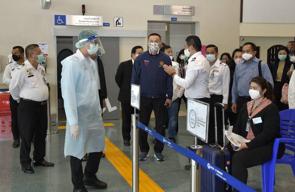 สำหรับท่าอากาศยานภูเก็ต ขณะนี้การคัดกรองนักท่องเที่ยวชาวต่างชาติทุกขั้นตอน ทุกระบบมีความพร้อมแล้ว โดยเฉพาะกระบวนการเก็บสารคัดหลั่งและการตรวจหาเชื้อโควิด-19 หากมีนักท่องเที่ยวกลุ่มแรกเข้ามาแล้วระบบคัดกรองใช้ได้ผล ก็จะนำไปสู่การเพิ่มอัตราการผ่อนคลายมาตรการได้มากขึ้น จึงให้จังหวัดภูเก็ตและหน่วยงานที่เกี่ยวข้องวางแผนการเตรียมการรองรับกรณีที่มีนักท่องเที่ยวเพิ่มขึ้นได้อย่างเพียงพอ ทั้งการบริหารจัดการอาคารสถานที่ของท่าอากาศยาน สถานที่กักตัว เครื่องมือ อุปกรณ์ และกระบวนการในการปฏิบัติงาน นอกจากนี้ ขอให้จังหวัดภูเก็ต กรมเจ้าท่า และหน่วยงานที่เกี่ยวข้องพิจารณาแนวทางในการส่งเสริม สนับสนุนธุรกิจท่องเที่ยวทางน้ำด้วยเรือยอร์ช เรือสำราญในพื้นที่ภูเก็ต เพื่อกระตุ้นเศรษฐกิจให้กลับมาฟื้นตัวขึ้นอีกครั้งด้วย