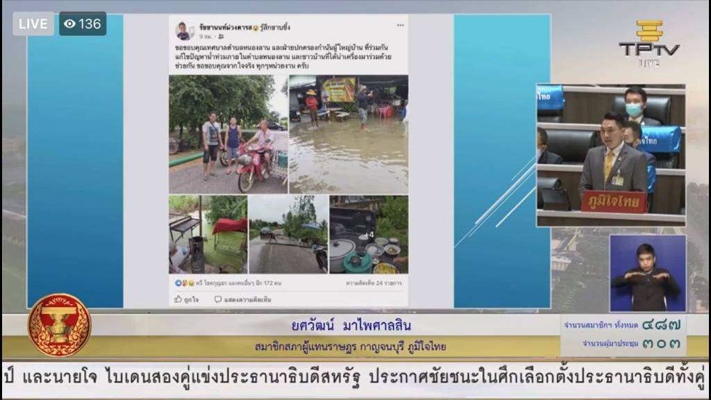 เรื่องที่ 2 เป็นเรื่องน้ำท่วมที่เกิดจากผลกระทบจากการก่อสร้างมอเตอร์เวย์บางใหญ่-กาญจนบุรี ด้วยกัน 3 ตำบล ก็คือ ตำบลดอนชะเอม ตำบลสนามแย้ และตำบลตะคร้ำเอน ที่เส้นทางของมอเตอร์เวย์นั้นไปขวางทางน้ำ ทำให้น้ำท่วมนา และท่วมบ้านเรือนประชาชน จึงฝากไปยังหน่วยงานที่เกี่ยวข้องเพื่อแก้ไขปัญหาต่อไป