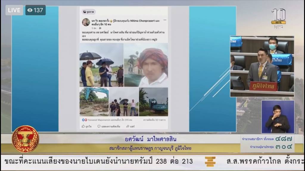 อย่างไรก็ดี ได้มีการนำเสนอต่อท่านรัฐมนตรี รัฐบาล ขณะเดียวกันถนนสายใหญ่เป็นสายหลัก ซึ่งเป็นสายที่มีการประปาส่วนภูมิภาคนั้นมีท่อเมนประปาอยู่ก็ได้นำเสนอให้กับทางท่านรัฐมนตรีได้รับทราบ และได้รับหนังสือจัดสรรหลังจากที่ ครม. ได้กลับไปว่าได้รับการจัดสรรงบประมาณในส่วนที่จะแก้ไขในส่วนของตำบลดอนตาเพชร จำนวน 35 ล้าน ลงวันที่ 23 กันยายน แต่วันนี้ได้รับการตอบกลับคืนให้ยกเลิกขณะที่ทำสัญญาแล้ว พ่อแม่พี่น้องประชาชนอำเภอพนมทวน จึงสอบถามผมว่าเกิดอะไรขึ้น กับงบประมาณนี้