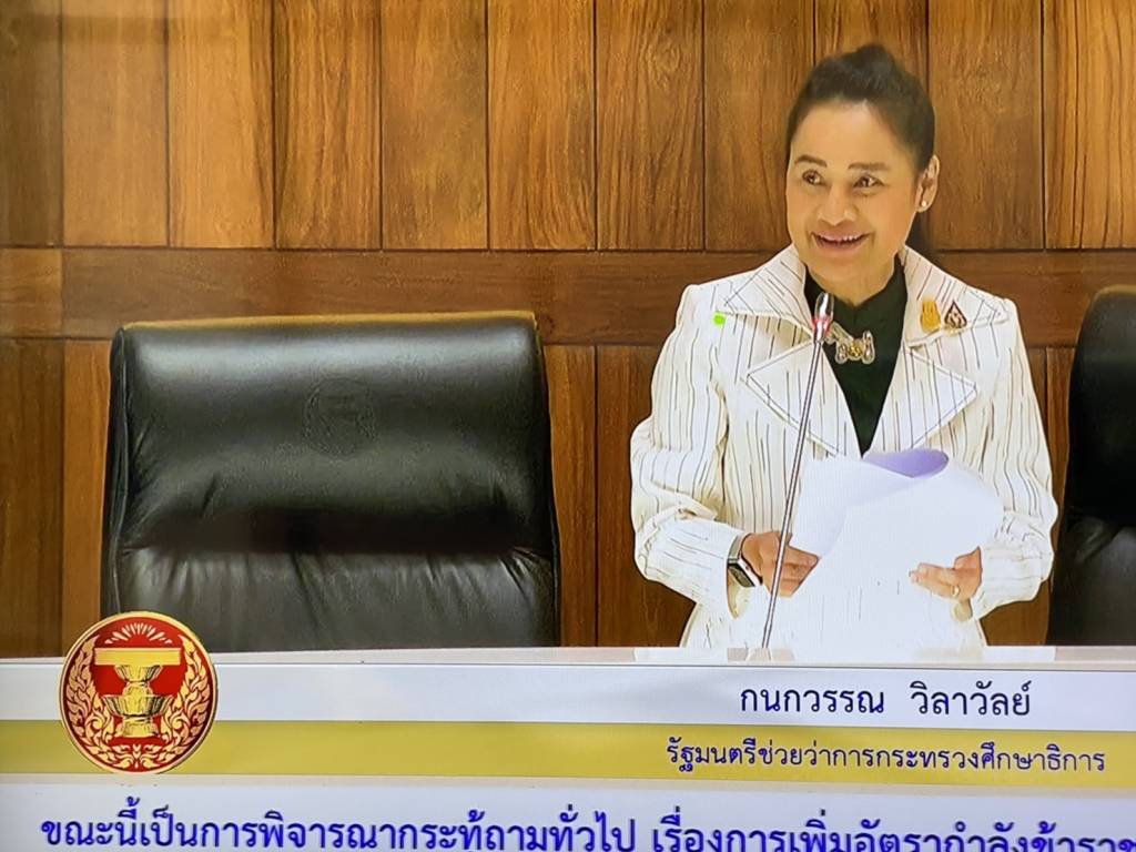 “ครูพี่โอ๊ะ” โชว์กึ๋น ตอบกระทู้ถามทั่วไป หนุน "เพิ่มอัตรากำลังบุคลากร 38ค.(2)” สังกัด สช.จังหวัดชายแดนใต้ หวังสร้างขวัญกำลังใจ-ความก้าวหน้า-ความมั่นคงในอาชีพ ย้ำ พร้อมขับเคลื่อนนโยบายด้านการศึกษาอย่างมีคุณภาพ เท่าทันโลกศตวรรษที่ 21