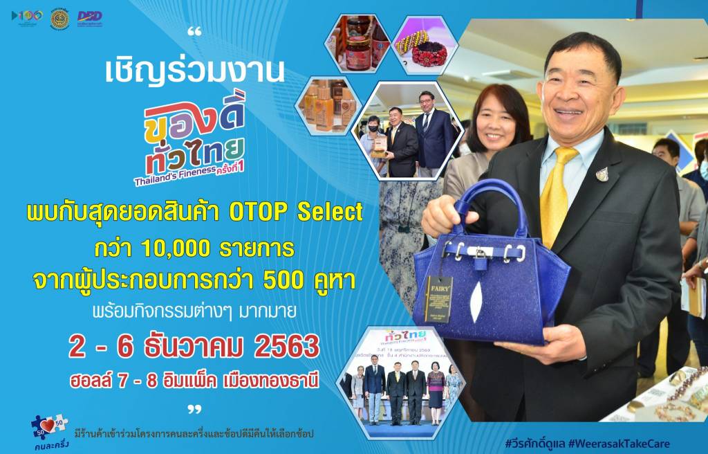 “งาน‘ของดีทั่วไทย ครั้งที่ 1’ Thailand’s Fineness กำหนดจัดขึ้นระหว่างวันที่ 2 - 6 ธันวาคม 2563 ณ ฮอลล์ 7 - 8 อิมแพ็ค เมืองทองธานี โดยการจัดงานในครั้งนี้ถือเป็นการยกระดับเศรษฐกิจฐานรากให้มีความเข้มแข็งและยั่งยืน สอดคล้องกับแผนงานตามนโยบายของรัฐบาล ซึ่งกรมพัฒนาธุรกิจการค้ามีภารกิจสำคัญในการส่งเสริมพัฒนาศักยภาพผู้ประกอบการโอทอปซีเล็คท์ และผลิตภัณฑ์โอทอปซีเล็คท์ ตั้งแต่ต้นน้ำ กลางน้ำ และปลายน้ำ ทั้งด้านการตลาด การพัฒนารูปแบบผลิตภัณฑ์เชิงสร้างสรรค์ การนำนวัตกรรมมาประยุกต์ใช้ การต่อยอดพัฒนาให้เกิดผลิตภัณฑ์ชุมชนนวัตกรรมใหม่ การพัฒนาช่องทางการตลาดทั้งในและต่างประเทศ ตลอดจนการสร้างเครือข่ายระหว่างผู้ประกอบการและพันธมิตรทั้งภาครัฐและเอกชนในการร่วมกันพัฒนาชุมชน/ผลิตภัณฑ์ของชุมชนในแต่ละท้องถิ่น เพื่อให้เกิดการสร้างงาน สร้างรายได้แก่ชุมชนอย่างยั่งยืน สร้างโอกาสทางการค้า และเชื่อมโยงการตลาดผลิตภัณฑ์โอทอปเข้าสู่ช่องทางการจัดจำหน่ายที่มีความหลากหลายมากขึ้น คาดว่าจะสามารถสร้างมูลค่าทางเศรษฐกิจได้ประมาณ 100 ล้านบาท”