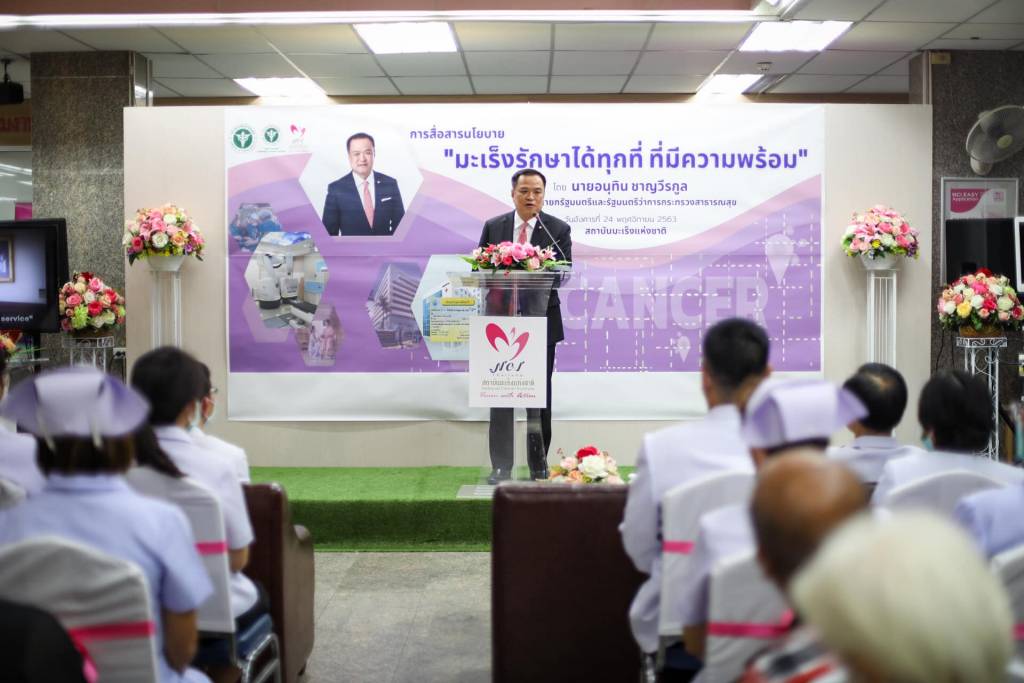 วันที่ 24 พฤศจิกายน 2563 ที่สถาบันมะเร็งแหง่ชาติ กรุงเทพฯ นายอนุทิน ชาญวีรกูล รองนายกรัฐมนตรีและรัฐมนตรีว่าการกระทรวงสาธารณสุข พร้อมด้วยผู้บริหารจากกรมการแพทย์ ได้เดินทางมาตรวจเยี่ยมเทคโนโลยีการรักษาผู้ป่วย และมอบนโยบาย “มะเร็งรักษาทุกที่ ที่มีความพร้อม” แก่ทีมแพทย์ เจ้าหน้าที่ และผู้ป่วย