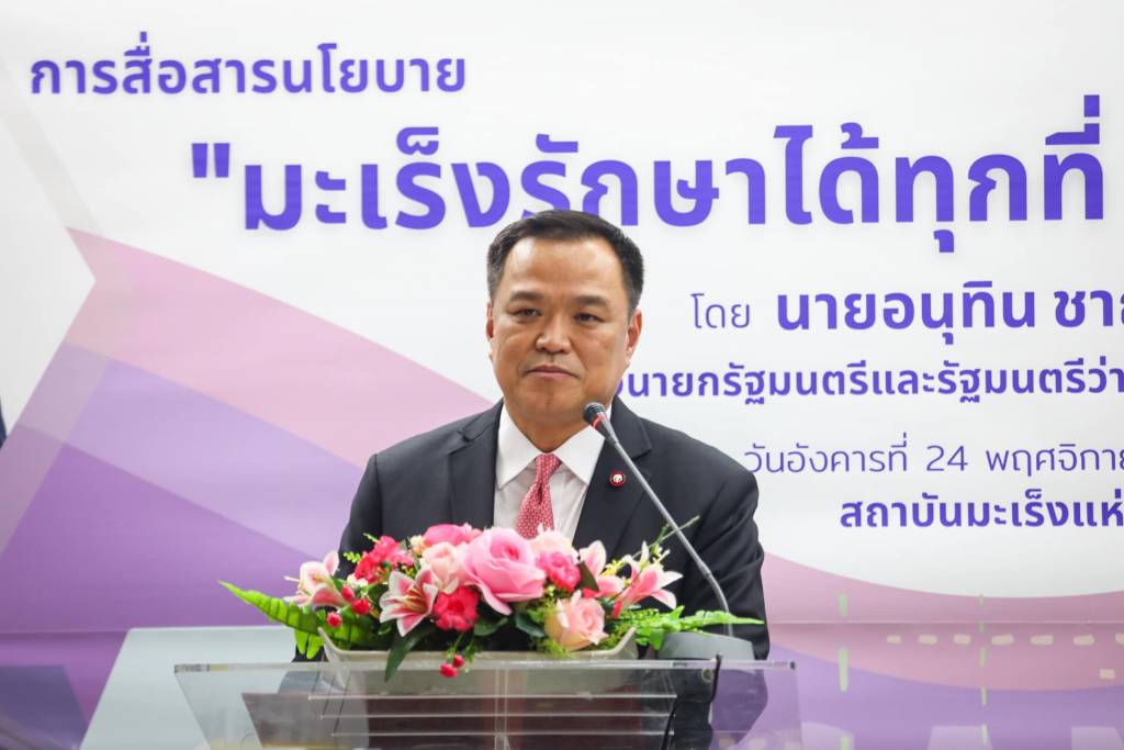 นายอนุทิน กล่าวว่า โรคมะเร็ง เป็นโรคที่มีความรุนแรง เมื่อตรวจพบแล้ว จำเป็นต้องรักษาอย่างรวดเร็ว ปัจจุบันนี้ แม้จะมีการระบาดของโควิด-19 แต่รัฐบาล ได้จัดสรรงบประมาณ ไว้ดูแลผู้ป่วยโรคอื่นเช่นกัน และโรคมะเร็ง เป็นโรคที่ต้องให้ความสำคัญ มีการนำเทคโนโลยีทางการแพทย์เข้ามาช่วย ภายใต้การสนับสนุนจากกระทรวงสาธารณสุข รวมไปถึงได้นำแพทย์ทางเลือก มาช่วยบรรเทาอาการ อาทิ การใช้กัญชา ในการดูแลผู้ป่วยมะเร็ง ขณะเดียวกัน ได้เพิ่มขีดความสามารถในการรักษา อาทิ โรงพยาบาลรามาธิบดี ที่เริ่มให้คีโม ถึงบ้านผู้ป่วย ส่งผลให้สุขภาพจิตของผู้ป่วยดีขึ้น ได้มีโอกาสหารือกับอธิบดีกรมการแพทย์ ทราบว่าประเทศไทยต้องการเครื่องฉายรังสีอีก 6-7 เครื่อง เพื่อขยายศักยภาพการให้บริการประชาชน ได้ผลักดัน ล่าสุด ทางพลเอกประยุทธ์ จันทร์โอชา นายกรัฐมนตรีเห็นชอบแล้ว จะมีการจัดหา และนำมาติดตั้งตามโรงพยาบาลทั่วประเทศ เพื่ออำนวยความสะดวกแก่ประชาชน