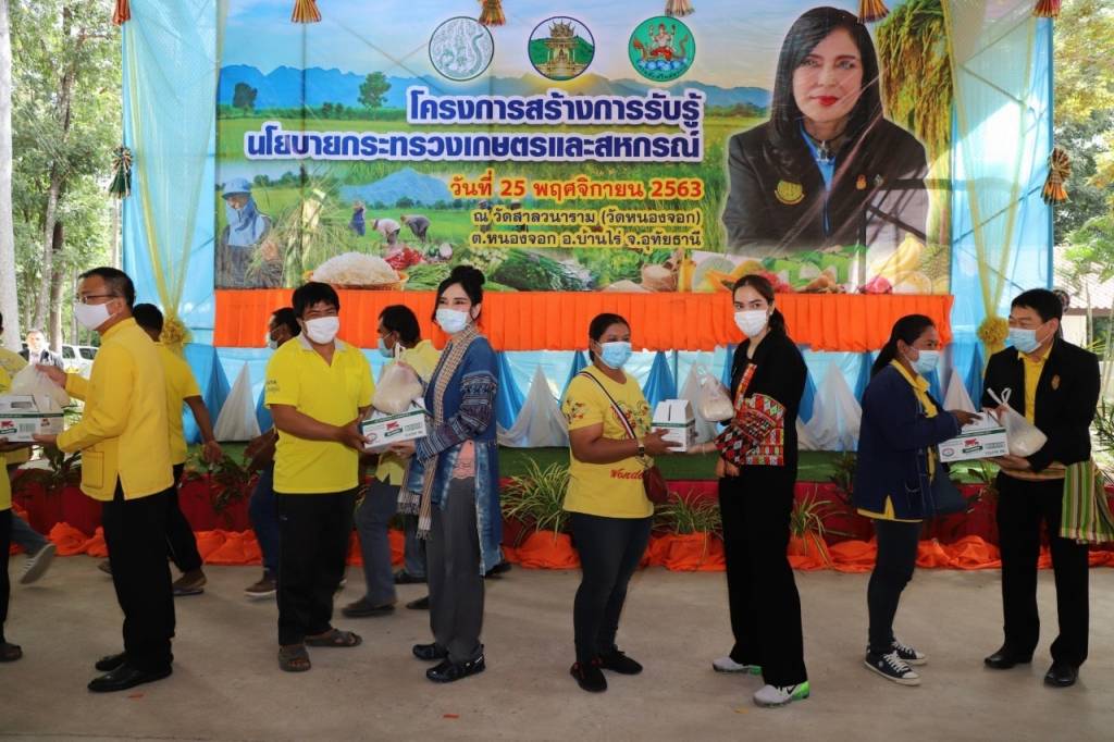 โดย รมช.ได้มีการกล่าวมอบนโยบายของกระทรวงเกษตรและสหกรณ์ ส่งเสริมการทำเกษตรอินทรีย์อย่างยั่งยืน และได้มอบพันธุ์ปลา ปุ๋ยอินทรีย์ เมล็ดพันธุ์พืช ข้าวสาร และผลิตภัณฑ์นมไทย-เดนมาร์ค ให้กับเกษตรกรที่มาร่วมงาน อีกทั้งมีการมอบป้ายเงินอุดหนุนโครงการพัฒนาศักยภาพกลุ่มอาชีพในสังกัดสหกรณ์ จำนวน 3 กลุ่มๆ ละ 100,000 บาท ได้แก่