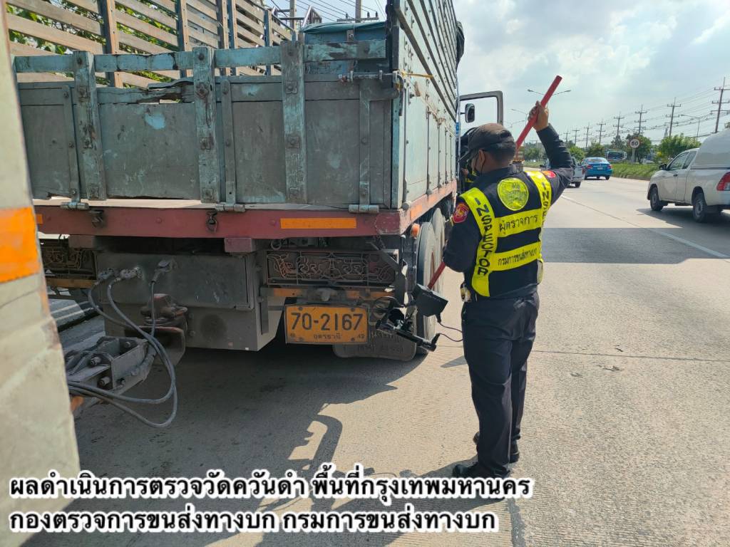 กรมการขนส่งทางบก ตรวจควันดำรถบรรทุกและรถโดยสารต่อเนื่องทั่วประเทศ มุ่งป้องกันและแก้ไขปัญหา PM2.5 วันที่ 28 พ.ย. พบรถที่มีค่าควันดำ 30 - 45 % ออกใบเตือน 18 คัน