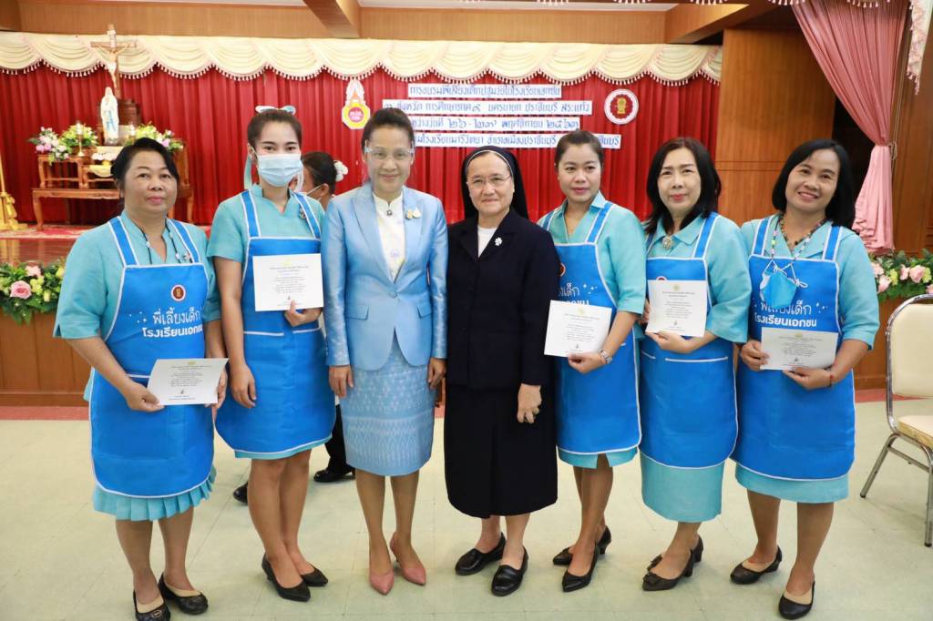 จึงขอแสดงความชื่นชมผู้เข้ารับการอบรม ที่มีความมุ่งมั่นใส่ใจพัฒนาตนเอง ซึ่งเชื่อมั่นว่าหากมีความตั้งใจศึกษา เรียนรู้ข้อมูลและความรู้จากวิทยากร ทั้งในเรื่องจิตวิทยาพัฒนาการเด็ก บทบาทและความสำคัญของพี่เลี้ยงผู้ดูแลเด็กปฐมวัย การดูแลสุขภาพเด็กและโภชนาการ การป้องกันอุบัติเหตุและปฐมพยาบาลเบื้องต้น ตลอดจนสิทธิเด็กและกฎหมายที่เกี่ยวข้อง พร้อมนำความรู้เหล่านี้ไปใช้เพื่อดูแลเด็กปฐมวัยในความรับผิดชอบอย่างจริงจัง ก็จะส่งผลให้เด็กได้รับการดูแลอย่างเป็นระบบ มีคุณภาพมาตรฐาน ที่จะทำให้เด็กมีพัฒนาการที่เหมาะสมตามช่วงวัยต่อไป