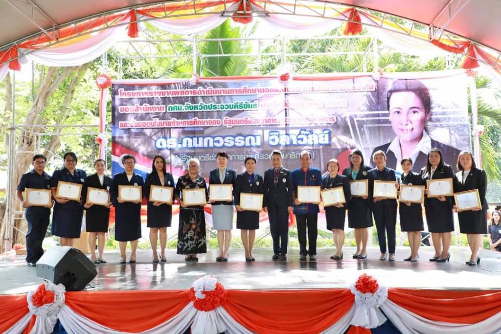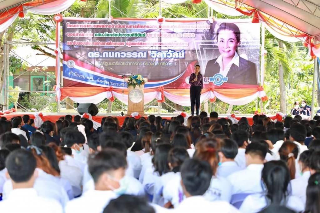 เมื่อวันที่ 30 พฤศจิกายน 2563 เวลา 08.30 น. ดร.กนกวรรณ วิลาวัลย์ รัฐมนตรีช่วยว่าการกระทรวงศึกษาธิการ ตรวจเยี่ยมการดําเนินงานการจัดการศึกษานอกระบบและการศึกษาตามอัธยาศัย ของสํานักงาน กศน.จังหวัดประจวบคีรีขันธ์ พร้อมมอบนโยบายด้านการศึกษา เพื่อพัฒนาประสิทธิภาพการทำงานของ กศน. สอดคล้องกับนโยบายของรัฐบาล ด้านการสร้างสังคมแห่งการเรียนรู้ตลอดชีวิต โดยมี นางสาวชไมพร อาไพจิตร รองผู้ว่าราชการจังหวัดประจวบคีรีขันธ์ นายวรัท พฤกษาทวีกุล เลขาธิการ กศน. นางเรียงตะวัน สิทธิเชนทร์ ผอ.สำนักงาน กศน.จังหวัดประจวบคีรีขันธ์ นักศึกษา ประชาชน เข้าร่วมและให้การต้อนรับ