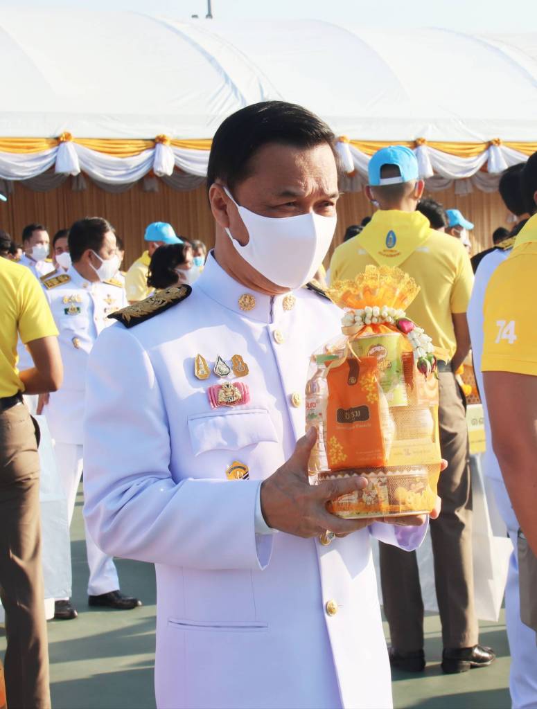 จากนั้น รมช.มท.3 ร่วมพิธีถวายพานพุ่มและพิธีถวายบังคมหน้าพระบรมฉายาลักษณ์ พระบาทสมเด็จพระบรมชนกาธิเบศร มหาภูมิพลอดุลยเดชมหาราช บรมนาถบพิตร