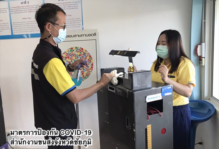 ในส่วนของการให้บริการที่สำนักงานขนส่งทุกแห่ง มีการปรับรูปแบบดำเนินการแบบ New Normal ตามมาตรการด้านสาธารณสุขอย่างเคร่งครัด พร้อมขอความร่วมมือประชาชนสวมหน้ากากอนามัยหรือหน้ากากผ้าในการติดต่อราชการ และปฏิบัติตามคำแนะนำของเจ้าหน้าที่ พร้อมประชาสัมพันธ์ให้ประชาชนจองคิวดำเนินการล่วงหน้าผ่านแอปพลิเคชัน DLT Smart Queue เพื่อบริหารจัดการจำนวนผู้ใช้บริการภายในสำนักงาน ตั้งจุดคัดกรอง ตรวจวัดอุณหภูมิประชาชน ก่อนเข้าอาคารสำนักงาน ที่นั่งพักคอยของประชาชนมีการเว้นระยะอย่างเหมาะสม ติดตั้ง Table Shield กั้นระหว่างผู้มาติดต่อกับเจ้าหน้าที่ พร้อมแนะนำการให้บริการชำระภาษีรถประจำผ่านช่องทางออนไลน์ เพื่อลดการสัมผัสและไม่ต้องเดินทางมาที่สำนักงานขนส่ง เช่น เว็บไซต์ https://eservice.dlt.go.th/ หรือ แอปพลิเคชัน DLT Vehicle Tax ดาวน์โหลดฟรีทั้งระบบปฏิบัติการ iOS: https://apple.co/3iAx6Dd และแอนดรอยด์: https://bit.ly/2XXQLVT