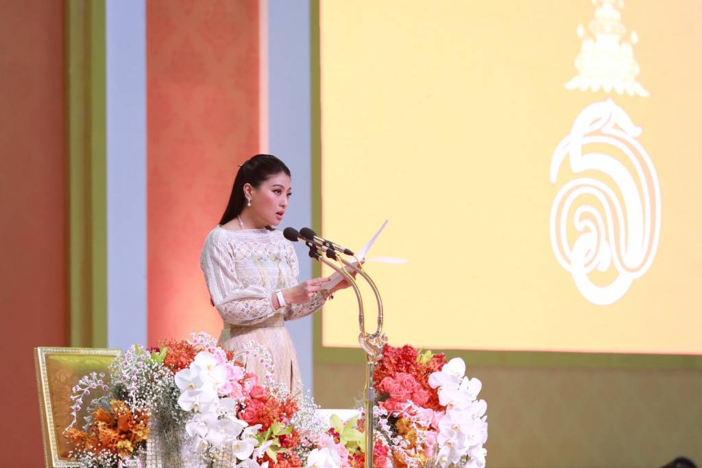 ในการนี้ ทรงมีพระดำรัส ใจความตอนหนึ่งว่า “ข้าพเจ้ามีความยินดีมากที่ได้มาร่วมในพิธีเปิดงาน OTOP City 2020 ในวันนี้ และรู้สึกชื่นชมเป็นอย่างยิ่งเมื่อทราบถึงวัตถุประสงค์ของการจัดงาน ผลิตภัณฑ์ OTOP เป็นการสืบสาน รักษา ต่อยอด ผลผลิต ทางวัฒนธรรม ในทุกภาคของประเทศ ที่จะทำให้เกิด ประโยชน์แก่ประชาชน ด้านเศรษฐกิจ และคุณภาพชีวิต ข้าพเจ้า ได้มีโอกาสตามเสด็จฯ สมเด็จย่า สมเด็จพระพันปีหลวง มาตั้งแต่เด็ก ได้เห็นท่านทรงงาน และรับรู้ถึงความทุ่มเทของพระองค์ท่านในการอนุรักษ์ศิลปหัตถกรรมพื้นบ้าน และสืบสานภูมิปัญญาไทยมาโดยตลอด เห็นการสร้างงาน สร้างรายได้ให้ประชาชนมีความเป็นอยู่ที่ดี สามารถพึ่งพาตนเองได้อย่างมั่นคง ข้าพเจ้ามีความตั้งใจ ที่จะสืบสานพระราชปณิธาน โดยข้าพเจ้าได้นำประสบการณ์การทำงาน การศึกษา เดินทางไปชมผ้าไทยและงานหัตถกรรมพื้นบ้านตามภาคต่างๆ ทำให้เห็นผลงานที่สามารถนำมาพัฒนาให้ร่วมสมัยและเป็นสากลได้จากการค้นคว้า เก็บข้อมูล ลงพื้นที่จริง ข้าพเจ้าจึงได้ออกแบบลายผ้ามัดหมี่มอบให้ช่างทอผ้าเป็นของขวัญปีใหม่ โดยออกแบบลายให้มีความหมายถึงการส่งมอบความรัก ความสุข ให้ชาวไทยทุกคน เป็นการจุดประกายความคิดในการพัฒนาลายผ้า ออกแบบให้ร่วมสมัย ใช้ได้จริงในหลายโอกาส ข้าพเจ้าขอชื่นชมกรมการพัฒนาชุมชนและท่านทั้งหลายที่ได้จัดงานในครั้งนี้ เพื่อให้มีพื้นที่แสดงผลงาน แลกเปลี่ยนเรียนรู้ และการจัดจำหน่าย เป็นการช่วยเสริมสร้างคุณค่าผลิตภัณฑ์สู่สากลอย่างยั่งยืน”
