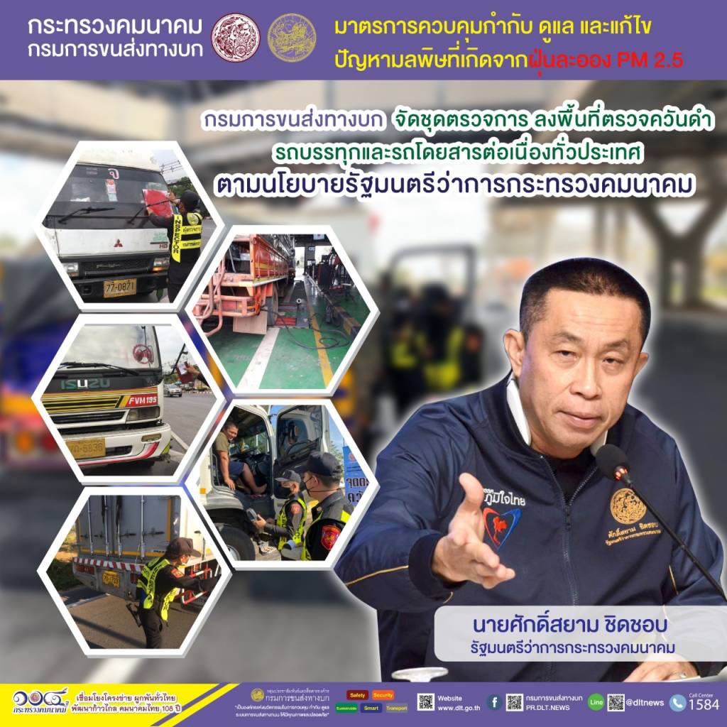 กรมการขนส่งทางบก ตรวจควันดำรถบรรทุกและรถโดยสารต่อเนื่องทั่วประเทศ มุ่งป้องกันและแก้ไขปัญหา PM2.5