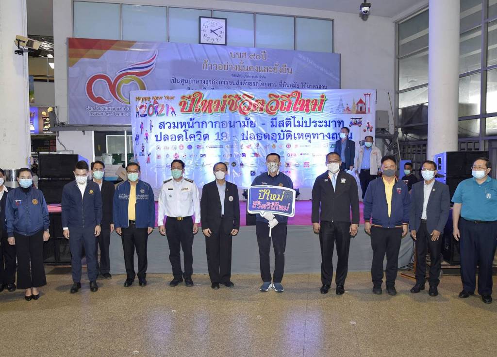นายศักดิ์สยาม ชิดชอบ กล่าวว่า จากสถิติอุบัติเหตุทางถนนช่วงเทศกาลปีใหม่ 2563 พบว่ามีคนไทยเสียชีวิต 373 คน บาดเจ็บ 3,499 คน โดยสาเหตุหลักเกิดจากการเมาแล้วขับ ขับรถเร็ว ง่วงแล้วขับ ขับรถตัดหน้ากระชั้นชิด ไม่สวมหมวกกันน็อก และการฝ่าฝืนสัญญาณไฟจราจร เป็นต้น นอกจากนี้ ยังมีสถานการณ์การแพร่ระบาดของโรคติดเชื้อไวรัส COVID-19 ซึ่งกระทรวงคมนาคมมีความห่วงใยต่อสถานการณ์อุบัติเหตุบนท้องถนนในช่วงเทศกาลปีใหม่ 2564 และการแพร่ระบาดของโรคติดเชื้อไวรัส COVID-19 เนื่องจากมีประชาชนเดินทางกลับภูมิลำเนาช่วงเทศกาลปีใหม่จำนวนมาก จึงได้ดำเนินการตามมาตรการอำนวยความสะดวก ความปลอดภัย เพื่อดูแลประชาชนให้ปลอดภัยในการใช้บริการระบบขนส่งสาธารณะ ทั้งจากเชื้อไวรัส COVID-19 และอุบัติเหตุอย่างเข้มงวด โดยผู้โดยสารที่เดินทางมายังสถานีขนส่งหมอชิตทุกคนต้องสวมหน้ากากอนามัย รักษาระยะห่าง ซึ่ง บขส. ได้จัดเตรียมเจลแอลกอฮอล์สำหรับบริการประชาชน และภาคีเครือข่ายภาครัฐ ภาคเอกชน ได้นำหน้ากากอนามัยและเจลแอลกอฮอล์มาแจกให้ผู้โดยสารภายในสถานีขนส่งหมอชิต นอกจากนี้ เนื่องจากสาเหตุหลักของอุบัติเหตุส่วนใหญ่เกิดจากการเมาแล้วขับ ขับรถเร็ว จึงได้กำหนดแนวปฏิบัติให้พนักงานที่ขับขี่รถโดยสารสาธารณะต้องปฏิบัติอย่างเคร่งครัด เช่น พนักงานขับรถโดยสาร บขส. องค์การขนส่งมวลชนกรุงเทพ (ขสมก.) และรถร่วม ต้องปลอดแอลกอฮอล์ ไม่ขับรถเร็วเกินกว่ากฎหมายกำหนด และงดการโทรแล้วขับ เป็นต้น โดยเฉพาะในรถสาธารณะแอลกอฮอล์จะต้องเป็นศูนย์มิลลิกรัม หากตรวจพบว่าพนักงานขับรถมีปริมาณแอลกอฮอล์เกินศูนย์มิลลิกรัมจะลงโทษสถานหนักถึงขั้นไล่ออก ให้ออก ตัดเงินเดือนหรือพักงาน เนื่องจากผู้ขับรถสาธารณะเป็นบุคคลที่ต้องรับผิดชอบชีวิตผู้อื่นเป็นจำนวนมาก จึงจำเป็นต้องมีมาตรฐานในการขับขี่รถที่สูงกว่าผู้ขับขี่รถทั่วไป การดื่มเครื่องดื่มแอลกอฮอล์แม้แต่เพียงเล็กน้อยถือว่าเป็นเจตนาที่จะละเมิดกฎแห่งความปลอดภัย ถือว่าความผิดสำเร็จแล้วฐานดื่มสุราในขณะปฏิบัติหน้าที่ และผิดกฎหมายขนส่งโทษจำคุกไม่เกิน 3 เดือน ปรับ 2,000 - 10,000 บาท หรือทั้งจำทั้งปรับ