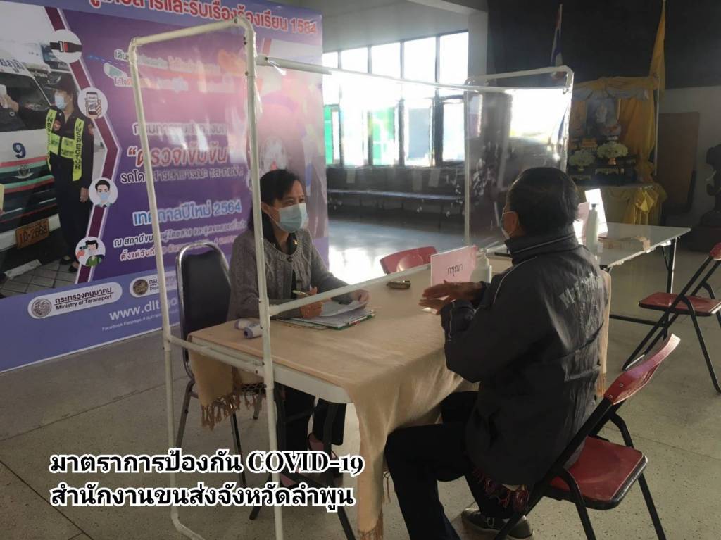 ในส่วนของการให้บริการที่สำนักงานขนส่งทุกแห่ง มีการปรับรูปแบบดำเนินการแบบ New Normal ตามมาตรการด้านสาธารณสุขอย่างเคร่งครัด พร้อมขอความร่วมมือประชาชนสวมหน้ากากอนามัยหรือหน้ากากผ้าในการติดต่อราชการ และปฏิบัติตามคำแนะนำของเจ้าหน้าที่ พร้อมประชาสัมพันธ์ให้ประชาชนจองคิวดำเนินการล่วงหน้าผ่านแอปพลิเคชัน DLT Smart Queue เพื่อบริหารจัดการจำนวนผู้ใช้บริการภายในสำนักงาน ตั้งจุดคัดกรอง ตรวจวัดอุณหภูมิประชาชน ก่อนเข้าอาคารสำนักงาน ที่นั่งพักคอยของประชาชนมีการเว้นระยะอย่างเหมาะสม ติดตั้ง Table Shield กั้นระหว่างผู้มาติดต่อกับเจ้าหน้าที่ พร้อมแนะนำการให้บริการชำระภาษีรถประจำผ่านช่องทางออนไลน์ เพื่อลดการสัมผัสและไม่ต้องเดินทางมาที่สำนักงานขนส่ง เช่น เว็บไซต์ https://eservice.dlt.go.th/ หรือ แอปพลิเคชัน DLT Vehicle Tax ดาวน์โหลดฟรีทั้งระบบปฏิบัติการ iOS: https://apple.co/3iAx6Dd และแอนดรอยด์: https://bit.ly/2XXQLVT