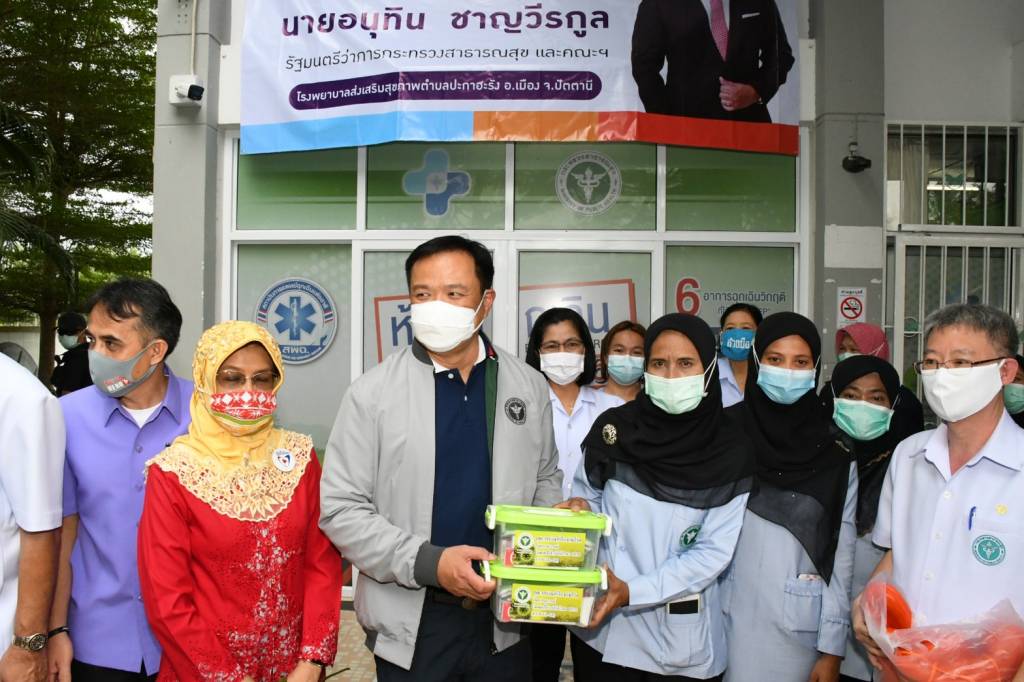วันที่ 16 มกราคม 2564 ที่ศาลากลางจังหวัดปัตตานี นายอนุทิน ชาญวีรกูล รองนายกรัฐมนตรีและรัฐมนตรีว่าการกระทรวงสาธารณสุข พร้อมด้วยนายแพทย์ยงยศ ธรรมวุฒิ รองปลัดกระทรวงสาธารณสุข แพทย์หญิงพรรณพิมล วิปุลากร อธิบดีกรมอนามัย นายแพทย์โอภาส การย์กวินพงศ์ อธิบดีกรมควบคุมโรค และคณะผู้บริหาร ลงพื้นที่ติดตามการดูแลด้านการแพทย์และสาธารณสุขผู้ประสบอุทกภัย จ.ปัตตานี พร้อมนำถุงยังชีพ ยา และเวชภัณฑ์ที่จำเป็น ได้แก่ ยาผู้ประสบภัยน้ำท่วม 1 หมื่นชุด ยาน้ำกัดเท้า 1 หมื่นหลอด ผงน้ำตาลเกลือแร่ 2 หมื่นซอง คลอรีนผง 10 ถัง และสารส้ม 10 กระสอบสนับสนุนการช่วยเหลือและให้บริการประชาชนในพื้นที่