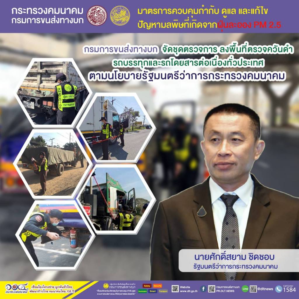 กรมการขนส่งทางบก ขานรับนโยบาย รมว.ศักดิ์สยาม ชิดชอบ ตรวจควันดำรถบรรทุกและรถโดยสารต่อเนื่องทั่วประเทศ ป้องกันและแก้ไขปัญหา PM2.5