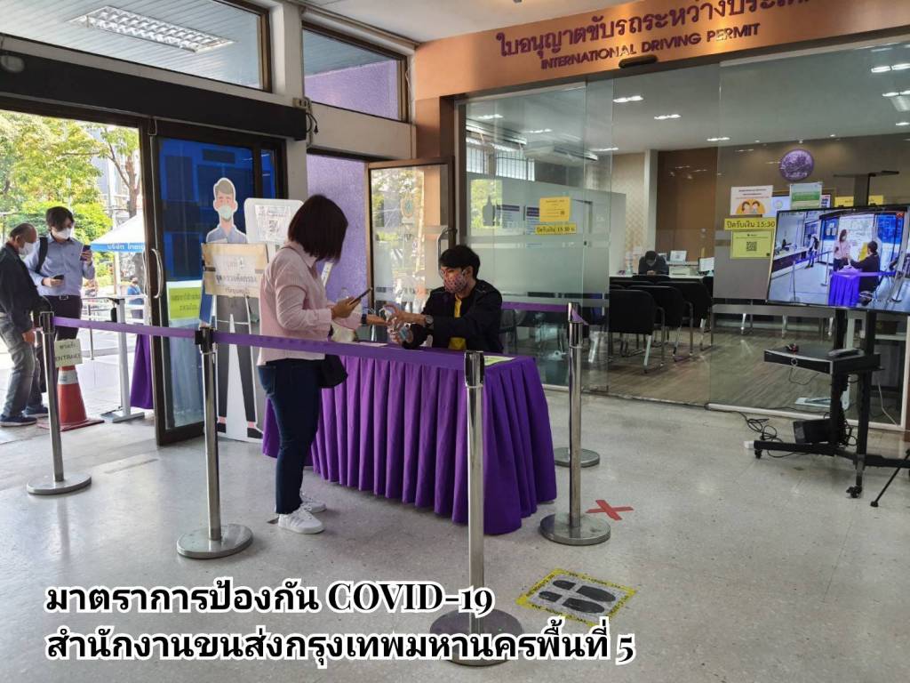 ในส่วนของการให้บริการที่สำนักงานขนส่งทุกแห่ง มีการปรับรูปแบบดำเนินการแบบ New Normal ตามมาตรการด้านสาธารณสุขอย่างเคร่งครัด พร้อมขอความร่วมมือประชาชนสวมหน้ากากอนามัยหรือหน้ากากผ้าในการติดต่อราชการ และปฏิบัติตามคำแนะนำของเจ้าหน้าที่ พร้อมประชาสัมพันธ์ให้ประชาชนจองคิวดำเนินการล่วงหน้าผ่านแอปพลิเคชัน DLT Smart Queue เพื่อบริหารจัดการจำนวนผู้ใช้บริการภายในสำนักงาน ตั้งจุดคัดกรอง ตรวจวัดอุณหภูมิประชาชน ก่อนเข้าอาคารสำนักงาน ที่นั่งพักคอยของประชาชนมีการเว้นระยะอย่างเหมาะสม ติดตั้ง Table Shield กั้นระหว่างผู้มาติดต่อกับเจ้าหน้าที่ พร้อมแนะนำการให้บริการชำระภาษีรถประจำผ่านช่องทางออนไลน์ เพื่อลดการสัมผัสและไม่ต้องเดินทางมาที่สำนักงานขนส่ง เช่น เว็บไซต์ https://eservice.dlt.go.th/ หรือ แอปพลิเคชัน DLT Vehicle Tax ดาวน์โหลดฟรีทั้งระบบปฏิบัติการ iOS: https://apple.co/3iAx6Dd และแอนดรอยด์: https://bit.ly/2XXQLVT