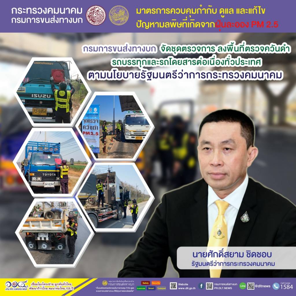 ทั้งนี้ กำชับผู้ประกอบการและเจ้าของรถทุกคันที่ถูกพ่นห้ามใช้ ต้องนำรถไปแก้ไขและนำรถเข้ารับการตรวจสภาพ ณ สำนักงานขนส่ง หากฝ่าฝืนใช้รถโดยที่มีคำสั่งห้ามใช้ มีความผิดตามกฎหมาย ด้านประชาชนสามารถมีส่วนร่วมป้องกันและแก้ไขปัญหาฝุ่นละอองขนาดเล็ก PM 2.5 ด้วยการส่งภาพรถบรรทุกและรถโดยสารควันดำที่สังเกตเห็นหมายเลขทะเบียนชัดเจน ให้ศูนย์คุ้มครองผู้โดยสารและรับเรื่องร้องเรียน สายด่วน 1584 ตลอด 24 ชั่วโมง