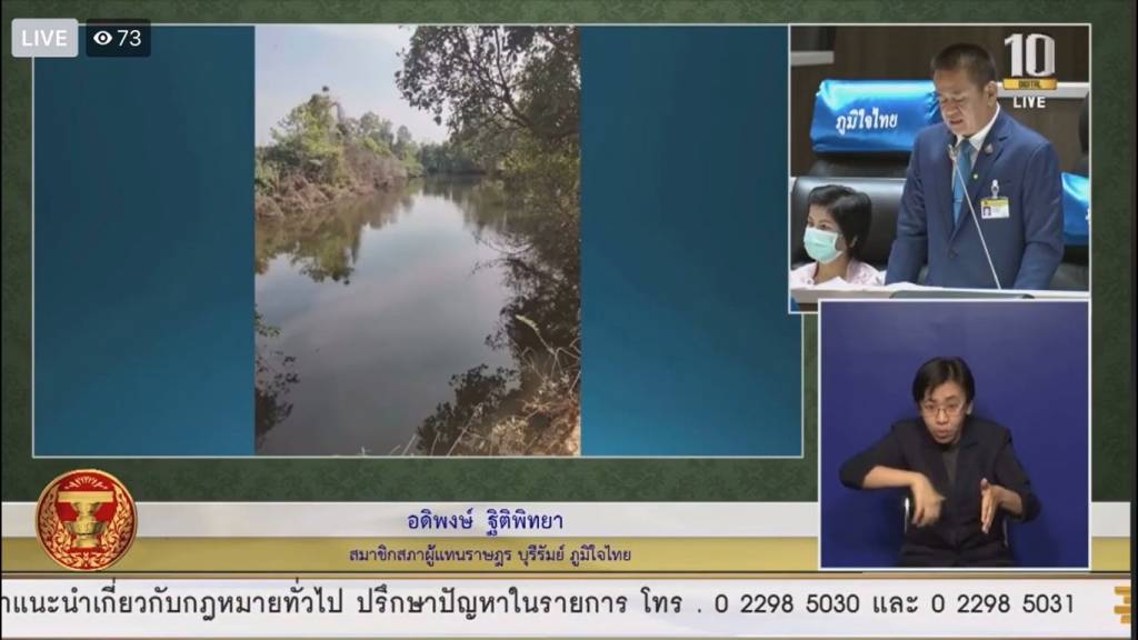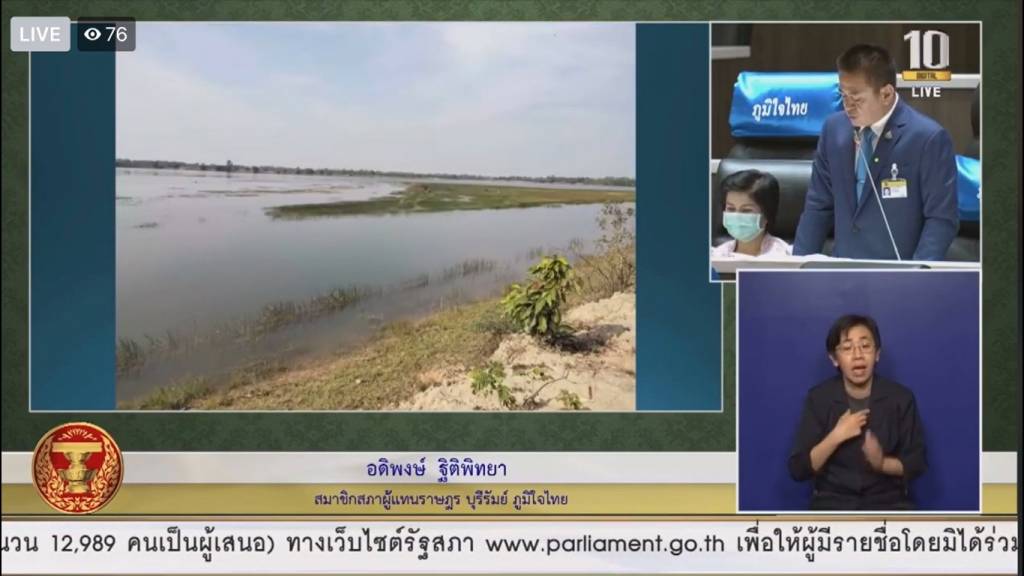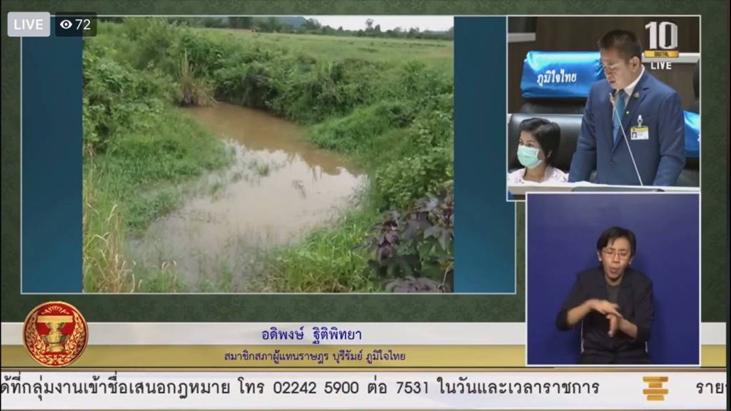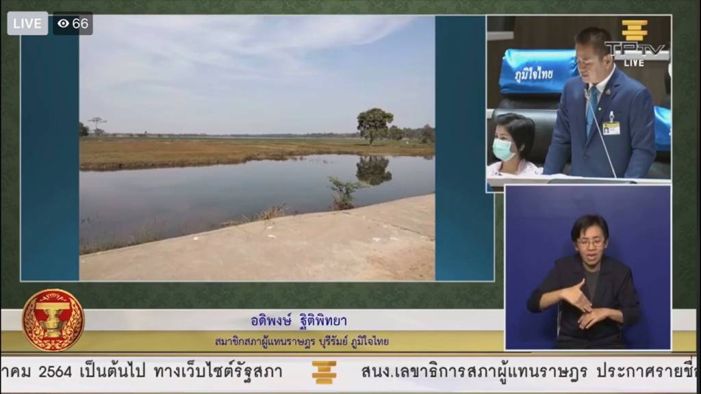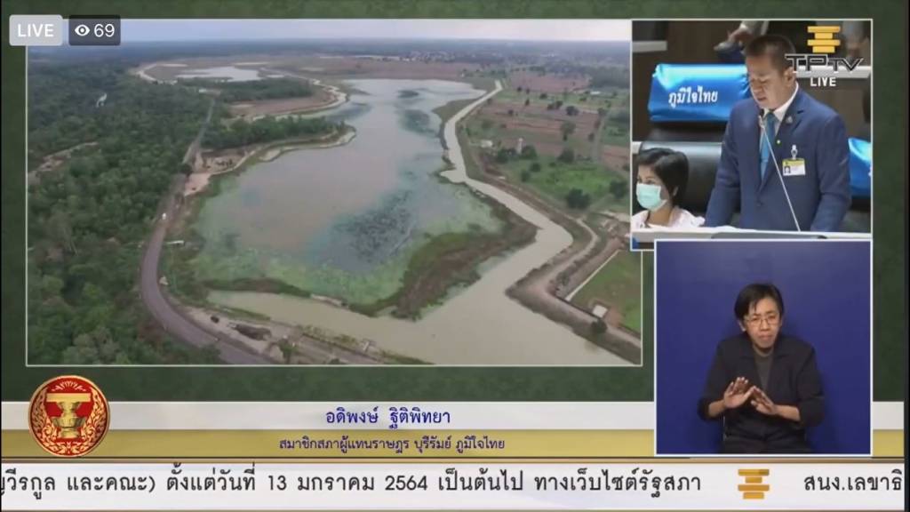 เรื่องที่ 2 ได้รับการประสานงานจากนายอุดม สุขมา นายกองค์การบริหารส่วนตำบลป่าชัน อำเภอพลับพลาชัย จังหวัดบุรีรัมย์ ว่าประชาชนในตำบลป่าชัน และตำบลใกล้เคียงได้ความได้รับความเดือดร้อนจากลำห้วยหนองตะแบก อันเนื่องมาจากพระราชดำริ เป็นลำห้วยขนาดใหญ่ ไหลผ่าน 3 ตำบล เวลาหน้าฝนน้ำฝนที่มีปริมาณมากเกินไปไหลหลากมาท่วม แต่พอถึงหน้าแล้ง ลำห้วยที่ตื้นเขินไม่สามารถกักเก็บน้ำได้ และประชาชนได้ขาดน้ำในการอุปโภค-บริโภค เดือดร้อนทุกปี จึงขอเรียนไปยังกรมชลประทาน กระทรวงเกษตรและสหกรณ์ ให้ช่วยเหลือพัฒนาคุณลอกลำห้วยตะแบก อันเนื่องมาจากพระราชดำริ ให้สามารถกักเก็บน้ำได้มากขึ้น ซึ่งจะช่วยบรรเทาปัญหาความเดือดร้อนให้กับประชาชนได้เป็นอย่างมาก
