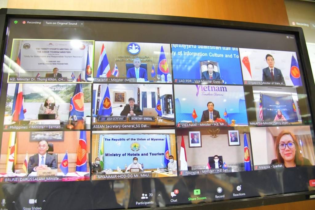 ประเทศไทยยินดีให้การรับรองรายงานความคืบหน้าการดำเนินงานของเจ้าหน้าที่อาวุโสด้าน การท่องเที่ยวอาเซียน แผนยุทธศาสตร์การท่องเที่ยวอาเซียน ฉบับปรับปรุง ATSP 2016-2025 และข้อมูลการลงทุนด้านการท่องเที่ยวในอาเซียนซึ่งจัดทำโดยฟิลิปปินส์ (ASEAN Tourism Investment Portfolio) ผมเห็นด้วยเป็นอย่างยิ่งกับการทบทวนถึงวาระของแผนยุทธศาสตร์ท่องเที่ยวอาเซียน ปี 2564-2568 เพื่อให้แผนงานมีความทันสมัยและทันต่อเหตุการณ์ที่เปลี่ยนแปลงไปอย่างรวดเร็ว อีกทั้ง แผนดังกล่าว ยังจัดลำดับและให้ความสำคัญกับกิจกรรมและโครงการที่มุ่งจะฟื้นฟูการท่องเที่ยวในภูมิภาคหลัง สถานการณ์โควิด-19 คลี่คลาย ซึ่งไทยพร้อมร่วมมือกับเพื่อนประเทศสมาชิกอย่างเต็มที่เพื่อให้การดำเนินการตามแผนยุทธศาสตร์การท่องเที่ยวอาเซียนประสบผลสำเร็จ และเพื่อความแข็งแกร่งของประชาคมอาเซียนในระยะยาว
