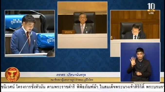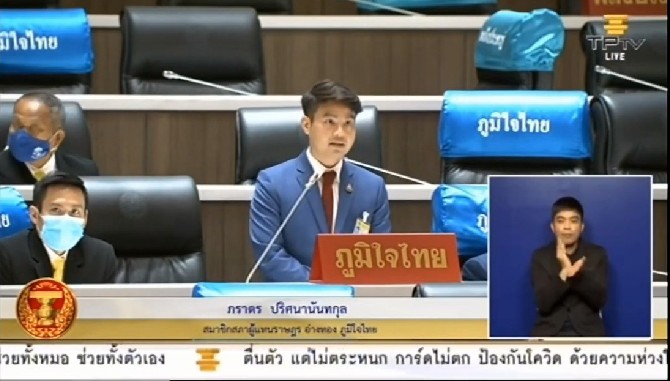 “ขณะนี้มีหนังสือตอบกลับมาจาก สภาผู้แทนราษฎร ถึงพรรคภูมิใจไทย มี 4-5 หน่วยงานแล้ว เป็นเรื่องน่ายินดีว่า ได้ถามนอกรอบกับกระทรวงงศึกษาธิการ ตอบกลับมาว่าไม่ขัดกับตัวร่าง พ.ร.บ.ฉบับนี้ เพียงแต่มีเงื่อนไขบางประเด็นเท่านั้น ไม่มีปัญหาเลย รับในหลักการก่อน แล้วเข้าสู่ชั้นกรรมาธิการ ค่อยมาแก้ไขกัน กระทรวงอุดมศึกษาก็ไม่ขัดข้องเช่นเดียวกัน ทางกฤษฎีกา ก็บอกว่า แล้วแต่หน่วยงานอื่นจะเห็นอย่างไร วันนี้ต้องถาม กระทรวงการคลัง เพราะเหลือท่านเพียงกระทรวงเดียวแล้ว ว่าท่านเห็นความสำคัญของเรื่องนี้มากน้อยแค่ไหน ขอความกรุณาให้ความเห็นชอบ แล้วประเด็นที่ไม่ตรงกัน ให้มาแก้ไขที่นี่ ท่านเห็นใจประชาชนด้วย โควิดก็เข้ามาเล่นงานพวกเขา ขณะนี้ว่างงานไม่รู้กี่ล้านตำแหน่ง”