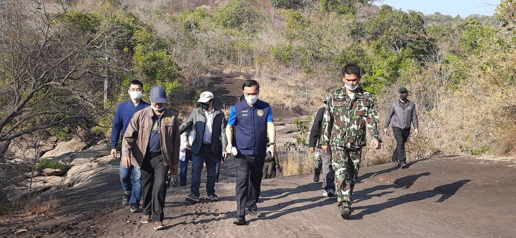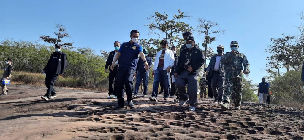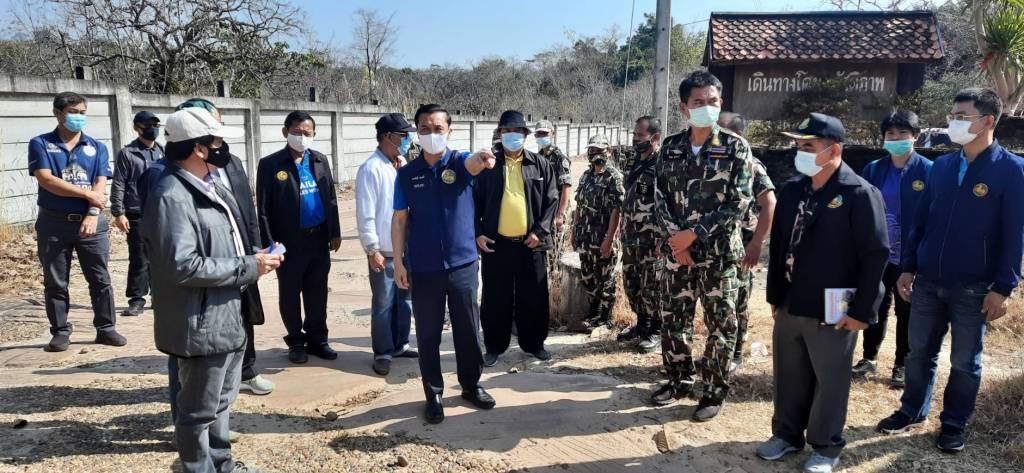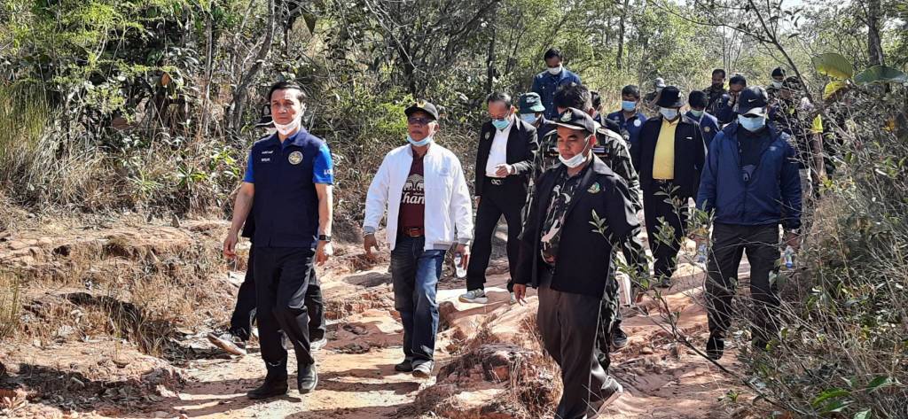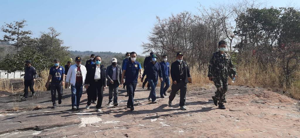 โดยมี นายธาตรี บุญมาก รองผู้ว่าราชการจังหวัดบึงกาฬ นายมณเฑียร วิริยะพันธุ์ ผู้อำนวยการสำนักงานทรัพยากรธรรมชาติและสิ่งแวดล้อมจังหวัดบึงกาฬ นายอนุชิต ดีชัยทน ผู้อำนวยการแขวงทางหลวงชนบทบึงกาฬ นายวิษณุ กุมภาร์ หัวหน้าเขตรักษาพันธุ์สัตว์ป่าภูวัว กำนัน ผู้ใหญ่บ้านตำบลบ้านต้อง และส่วนราชการที่เกี่ยวข้องร่วมลงพื้นที่และให้ข้อมูล