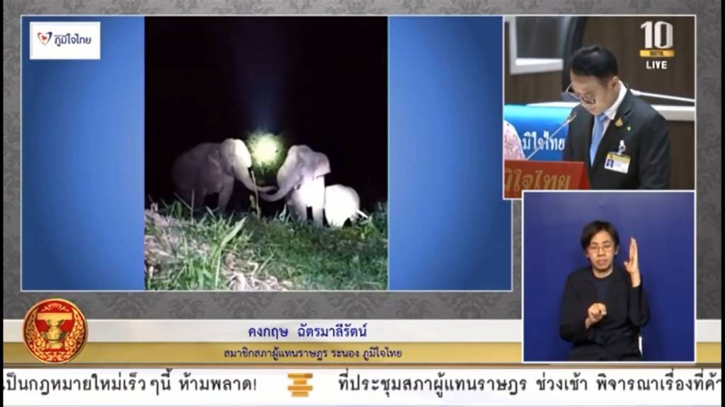 ในส่วนนี้ ทราบว่ามีพ.ร.บ.สงวนและคุ้มครองสัตว์ป่า พ.ศ. 2562 จึงอยากตั้งเป็นข้อสังเกตว่า ถ้ามีการตั้งกรรมาธิการวิสามัญชุดนี้ อยากให้ศึกษาเรื่องเกี่ยวกับงบประมาณอย่างแท้จริงว่า งบประมาณนี้สามารถมาใช้ดูแลเยียวยาประชาชนได้หรือไม่ หรือใช้เฉพาะดูแลข้าราชการ และเจ้าหน้าที่ในการปฏิบัติหน้าที่ ในส่วนของจังหวัดระนอง ได้รับการประสานงานจากผู้ใหญ่บ้านละอุ่นเหนือและก็ผู้นำท้องถิ่น แจ้งว่าในส่วนของปัญหา จ.ระนอง ก็มีช้างป่าเช่นกัน