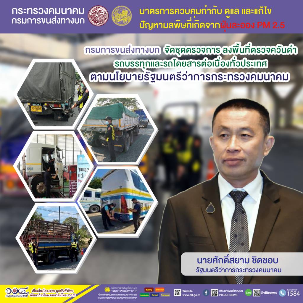 กรมการขนส่งทางบก ตรวจควันดำรถบรรทุกและรถโดยสารต่อเนื่องทั่วประเทศ มุ่งป้องกันและแก้ไขปัญหา PM2.5
