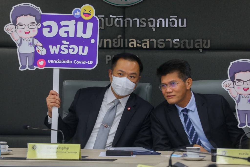 นายอนุทินกล่าวว่า รัฐบาลได้มอบหมายให้กระทรวงสาธารณสุข จัดหาและจัดบริการฉีดวัคซีนป้องกันโควิด 19 ให้กับทุกคนที่อยู่ในประเทศไทยตามความสมัครใจ ซึ่งขณะนี้วัคซีน 3 แสนโดสแรกถึงประเทศไทยแล้ว ทั้งจากบริษัทซิโนแวคและแอสตร้าเซนเนกา ซึ่งจะทยอยส่งจนครบ 63 ล้านโดสและฉีดให้กับประชาชนภายในปี 2564 กระทรวงสาธารณสุข จึงได้มอบหมายให้ อสม.กว่า 1 ล้าน 5 หมื่น คน ลงพื้นที่เคาะประตูบ้าน ให้ความรู้ ความเข้าใจที่ถูกต้องเรื่องการฉีดวัคซีนโควิด 19 แก่ประชาชน รวมทั้งให้สำรวจกลุ่มเสี่ยง และคัดกรองกลุ่มเป้าหมายที่ควรได้รับวัคซีนเป็นอันดับแรก ให้คำแนะนำความสำคัญที่ต้องได้รับวัคซีน ความปลอดภัย รวมถึงขั้นตอนการรับการฉีดวัคซีน