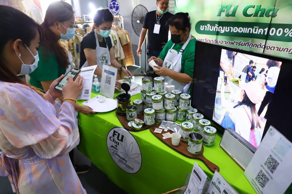 ทางด้านผู้ประกอบการ และร้านต่าง ๆ ที่นำผลิตภัณฑ์มาร่วมออกงานในครั้งนี้ กว่า 50 ร้าน ต่างก็ได้รับการตอบรับจากประชาชน หาซื้อสินค้า ผลิตภัณฑ์ต่าง ๆ โดย น.ส.อารยา อินทรานนท์ ผู้ประกอบการผลิตภัณฑ์ Fu Cha Cannabis เปิดเผยว่า เป็นผู้ประกอบการที่ผลิตสินค้าจากใบกัญชา ด้วยการนำมาทำเป็นชาชงดื่ม จากที่รัฐบาลได้ประกาศนโยบายกัญชาทางการแพทย์ หลังจากนั้นทางสำนักงานคณะกรรมการอาหารและยา(อย.) ปลดล็อกส่วนของพืชกัญชาที่ยกเว้นช่อดอกและเมล็ด ออกจากยาเสพติดให้โทษประเภทที่ 5 แล้ว เราก็มองเห็นอนาคตของการดำเนินธุรกิจ ซึ่งก็คิดว่ากัญชาน่าจะเป็นพืชเศรษฐกิจให้ประเทศไทยได้ ชาจากกัญชาที่นำมาร่วมงาน สามารถชงร้อนและเย็นได้ มีคุณสมบัติช่วยให้ผู้ดื่มหลับลึกมากขึ้น เพราะมีสารสกัดจากสารซีบีดี(CBD) มีฤทธิ์ช่วยให้ผ่อนคลาย เราก็จะให้คำแนะนำที่ถูกต้องกับผู้บริโภคในด้านสุขภาพ การรักษาโรค เช่น โรคเบาหวาน ความดันโลหิต จะต้องให้ผู้ดื่มเก็บข้อมูลก่อนและหลังดื่มเพื่อเป็นข้อมูลของตนเอง โดยแนะนำให้ดื่มในกลุ่มผู้ที่มีอายุมากกว่า 25 ปีขึ้นไปหลีกเลี่ยงการใช้ในผู้ป่วยโรคหัวใจ ระบบหัวใจผิดปกติ ระบบไตบกพร่อง