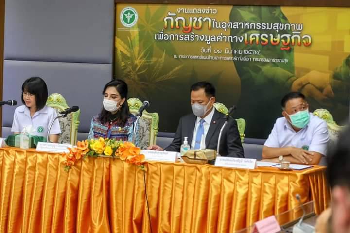 วันนี้ กรมการแพทย์แผนไทยและการแพทย์ทางเลือก ได้เชิญผู้ผลิตยาแผนไทย และผลิตภัณฑ์สุขภาพ ที่ต้องการใช้กัญชา ในส่วนที่ไม่เป็นยาเสพติด คือ ไม่ใช่ช่อดอก เป็นส่วนผสม มาพบปะ เพื่อแสดงความจำนงต้องการใช้กัญชา และจับคู่กับวิสาหกิจชุมชนที่ได้รับอนุญาตปลูกกัญชา ร่วมกับกรมการแพทย์แผนไทยฯ