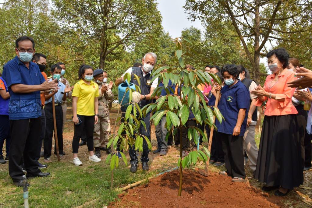 จากนั้นเวลา 16.45 น. เดินทางไปยังสวนสมเด็จพระศรีนครินทร์ศรีสะเกษ วิทยาลัยเกษตรและเทคโนโลยีศรีสะเกษ เยี่ยมชมการจัดงานเทศกาลดอกลำดวนบาน ชมการแสดงสินค้า OTOP การอนุรักษ์วัฒนธรรมประเพณี วิถีชีวิตของชนสี่เผ่า (ลาว เขมร ส่วย เยอ) ซึ่งเป็นอัตลักษณ์ของชาวจังหวัดศรีสะเกษ และส่งเสริมการท่องเที่ยวจังหวัดศรีสะเกษ ให้เป็นที่รู้จักกันอย่างแพร่หลาย
