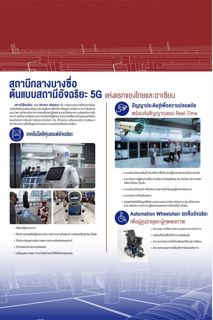 สำหรับพิธีเปิดการทดลองเพื่อเดินรถเสมือนจริงในครั้งนี้ นอกจากมีคณะผู้บริหารแล้ว ยังมีหน่วยงานภาครัฐภาคเอกชน กลุ่มตัวแทนนักเรียนนักศึกษา ผู้แทนภาคประชาชนได้เข้ามาร่วมทดลองเดินรถเสมือนจริงและสามารถชมความยิ่งใหญ่ของสถานีกลางบางซื่อได้ คือ ชั้นที่ 1 พื้นที่จำหน่ายตั๋วโดยสารและจุดเชื่อมต่อ การเดินทางด้วยระบบรางในกรุงเทพฯ ชั้นที่ 2 ชานชาลา ประกอบด้วย รถไฟทางไกล 8 ชานชาลา และรถไฟฟ้า ชานเมืองสายสีแดง 4 ชานชาลา และชั้นที่ 3 ชั้นชานชาลาสำหรับรถไฟเชื่อมท่าอากาศยาน และชานชาลารถไฟความเร็วสูง เชื่อมต่อการเดินทางทางอากาศและทางราง นอกจากนี้ ยังมีไฮไลท์ของงานคือการนำเทคโนโลยี 5G มาใช้ ซึ่งถือเป็นต้นแบบสถานีอัจฉริยะแห่งแรกของประเทศไทยและอาเซียน ยกระดับการให้บริการด้วยเทคโนโลยีหุ่นยนต์อัจฉริยะที่ตอบโต้ได้หลายภาษาให้บริการข้อมูลการเดินทาง นำทางในสถานี แนะนำสถานที่และเส้นทางการท่องเที่ยวแก่ผู้โดยสาร รวมถึงรักษาความปลอดภัยภายในสถานี ปัญญาประดิษฐ์เพื่อความปลอดภัย พร้อมส่งสัญญาณแบบ Realtime ที่มีระบบตรวจจับคนเดินล้ำเส้นเหลือง และระบบวิเคราะห์ผู้โดยสารที่มีความเสี่ยงจะเกิดอุบัติเหตุ ตลอดจนแอปพลิเคชั่นที่ให้ข้อมูลเพื่ออำนวยความสะดวกในการเดินทาง และการให้บริการ Automation Wheelchair รถเข็นอัจฉริยะเพื่อผู้สูงอายุและผู้ทุพลภาพ นับเป็นการเปิดประสบการณ์ใหม่ให้ผู้โดยสารสามารถสื่อสารกับหุ่นยนต์ได้จริง ตอบโจทย์การให้บริการด้วยเทคโนโลยี 5G ที่ทันสมัย พร้อมรองรับการพัฒนาสถานีกลางบางซื่อเป็นศูนย์กลางคมนาคมขนส่งของไทยและอาเซียน