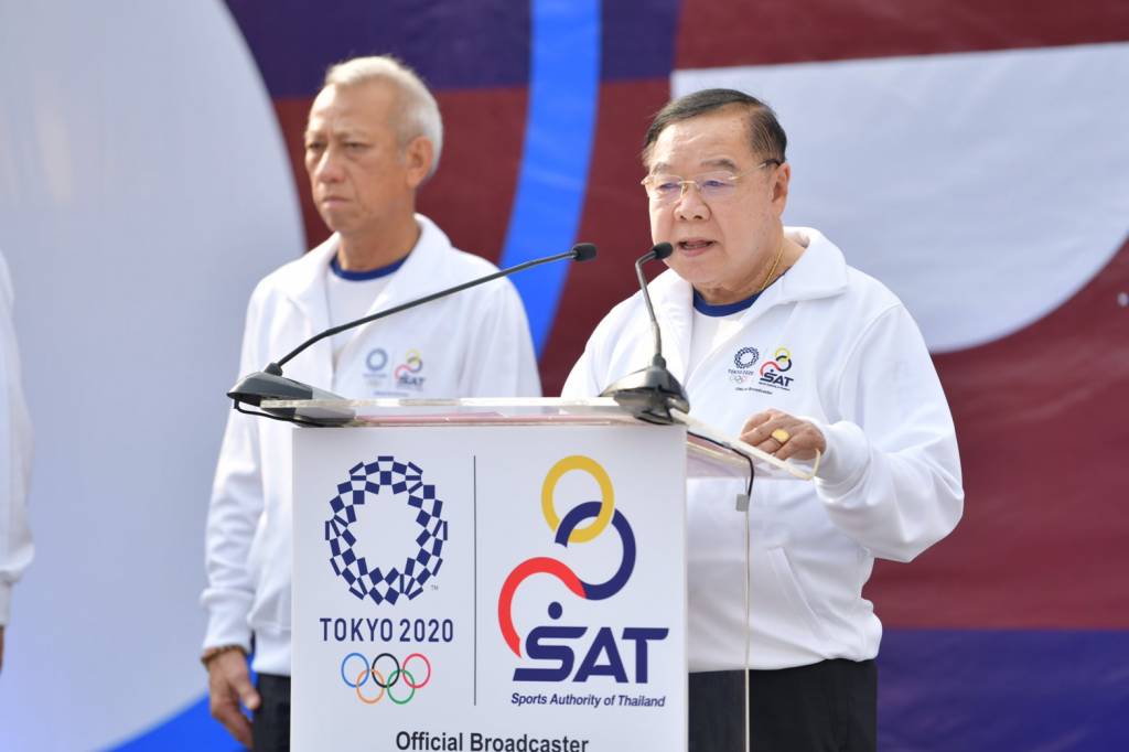 พลเอก ประวิตร วงษ์สุวรรณ รองนายกรัฐมนตรี และประธานคณะกรรมการโอลิมปิคแห่งประเทศไทย ใน พระบรมราชูปถัมภ์ เปิดเผยว่า ทั่วโลกต้องเผชิญหน้ากับวิกฤติการระบาดของไวรัสโควิด-19 ทำให้ กิจกรรมทุกอย่างต้องหยุดชะงักไปหมด รวมถึงโอลิมปิกเกมส์ที่ถูกเลื่อนออกไปด้วย อย่างไรก็ตามถือเป็น เรื่องดีที่ฝ่ายจัดฯ ยืนยันจะจัดการแข่งขันขึ้นอย่างแน่นอนในปี 2021 และจะทำให้เราได้ดูและเชียร์ นักกีฬาไทยในมกรรมกีฬาที่ยิ่งใหญ่ที่สุดของมวลมนุษย์ชาติ ทางรัฐบาลขอส่งกำลังใจให้กับคณะ เจ้าหน้าที่ นักกีฬาตัวแทนทีมชาติไทยทุกคนที่จะเดินทางไปปฏิบัติภารกิจเพื่อชาติในห้วงเวลาดังกล่าว ขอให้ทุกคนตั้งใจ ทุ่มเท มุ่งมั่นทำหน้าที่ของตนเองอย่างเต็มที่ที่สุด เพื่อโอกาสประสบความสำเร็จ คว้า ชัยชนะและเหรียญรางวัลกลับมาฝากคนไทย ขออย่าลืมความเป็นไทย และสปิริตของการเป็นนักกีฬา เชื่อว่ากิจกรรมในครั้งนี้จะเป็นการแสดงออกถึงการรวมกำลังใจของคนไทยทั้งชาติที่จะทำให้นักกีฬาไทย ได้รับรู้และมีกำลังใจในการทำหน้าที่เพื่อชาติต่อไป นายพิพัฒน์ รัชกิจปราการ รัฐมนตรีว่าการกระทรวงท่องเที่ยวและกีฬา เผยว่า กิจกรรม "วิ่งธงชาติไทย... รวมใจสู่ชัยชนะ" ถือเป็นงานวิ่งธงชาติครั้งยิ่งใหญ่ที่ไม่เคยเกิดขึ้นมาก่อน เชื่อว่าการจัดกิจกรรมใน ลักษณะนี้จะเป็นการกระตุ้นและสร้างการมีส่วนร่วมของแฟนกีฬาและประชาชนคนไทยให้เกิดการรับรู้ เข้าถึง และซึมซับบรรยากาศของการแข่งขันกีฬาโอลิมปิกเกมส์ได้มากขึ้น สิ่งเหล่านี้จะเป็นกำลังใจ สำคัญให้กับทัพนักกีฬาไทยในการเดินทางออกไปปฏิบัติภารกิจเพื่อสร้างชื่อเสียงให้กับประเทศ ที่สำคั ในครั้งนี้เรายังมีการถ่ายทอดสดการแข่งขันกลับมาให้คนไทยได้ร่วมติดตามเชียร์และให้กำลังใจอย่าง ใกล้ชิดผ่านหลากหลายช่องทางทั้งฟรีทีวีและแพลตฟอร์มต่างๆ ไม่ว่าจะเป็น ฟรีทีวี 6 ช่อง, โทรทัศน์ ดาวเทียม T-Sport24s, Mobile Application ที่ AIS PLAY และ AIS PLAY BOX ครบทุกชนิด กีฬาอีก 12 ช่องรายการ ด้วยความคมชัดระดับ HD ตลอดทั้งวัน