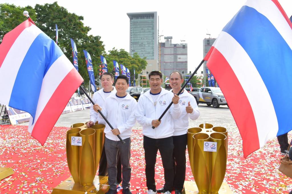 สำหรับเส้นทางการวิ่งผลัดธงชาติไทยครั้งประวัติศาสตร์ จะมีขึ้นใน 35 จังหวัด โดยออกสตาร์ท ที่ กรุงเทพมหานคร ก่อนวิ่งต่อไปยัง สมุทรสงคราม สมุทรสาคร เพชรบุรี ประจวบคีรีขันธ์ ชุมพร สุราษฎร์ธานี นครศรีธรรมราช สงขลา พัทลุง ราชบุรี นครปฐม กาญจนบุรี สุพรรณบุรี ชัยนาท นครสวรรค์ กำแพงเพชร ตาก ลำปาง ลำพูน เชียงใหม่ แพร่ อุตรดิตถ์ พิษณุโลก เพชรบูรณ์ ชัยภูมิ ขอนแก่น นครราชสีมา บุรีรัมย์ สระแก้ว จันทบุรี ระยอง ชลบุรี ฉะเชิงเทรา และมาสิ้นสุดที่สนามบินสุวรรณภูมิ จ. สมุทรปราการ