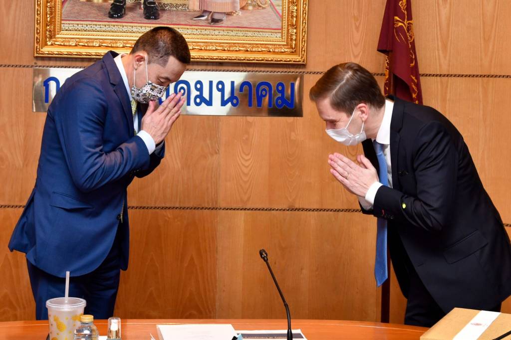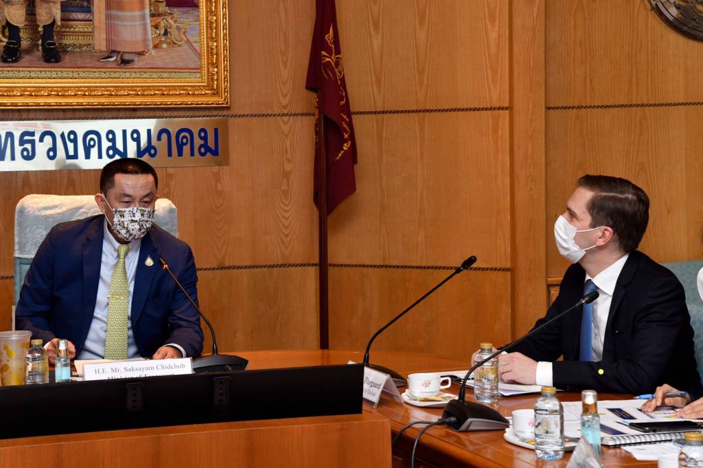 29 มีนาคม 2564 เวลา 22:08"ศักดิ์สยาม ชิดชอบ" รมว.คมนาคม ให้ เอกอัครราชทูตเดนมาร์กประจำประเทศไทย เข้าพบนายศักดิ์สยาม ชิดชอบ รัฐมนตรีว่าการกระทรวงคมนาคม ให้ นายยอน ทัวร์กอร์ด (H.E. Mr. Jon Thorgaard) เอกอัครราชทูตเดนมาร์กประจำประเทศไทย เข้าพบเพื่อเยี่ยมคารวะและหารือในโครงการพัฒนาระเบียงเศรษฐกิจภาคตะวันออก (EEC) และหารือเกี่ยวกับโครงการต่าง ๆ ของกระทรวงคมนาคม ในวันที่ 29 มีนาคม 2564 ณ ห้องประชุมกระทรวงคมนาคม โดยมี นายชยธรรม์ พรหมศร ปลัดกระทรวงคมนาคม นายปัญญา ชูพานิช ผู้อำนวยการสำนักงานนโยบายและแผนการขนส่งและจราจร เรือโท กมลศักดิ์ พรหมประยูร ผู้อำนวยการการท่าเรือแห่งประเทศไทย และกองการต่างประเทศ สำนักงานปลัดกระทรวงฯ ร่วมให้การต้อนรับ โดยรัฐมนตรีว่าการกระทรวงคมนาคมและเอกอัครราชทูตเดนมาร์กประจำประเทศไทย ได้หารือเกี่ยวกับความร่วมมือด้านการคมนาคมขนส่ง ในประเด็นต่าง ๆ ดังนี้ 1. ร่วมเฉลิมฉลองความสัมพันธ์อันดีระหว่างไทยและเดนมาร์กในวาระครบรอบ 400 ปี 2. แนวทางการส่งเสริมความร่วมมือในสาขาคมนาคมขนส่ง โดยรัฐมนตรีว่าการกระทรวงคมนาคม ได้นำเสนอแผนการพัฒนาโครงการโครงสร้างพื้นฐานด้านคมนาคมขนส่งของกระทรวงฯ ซึ่งพัฒนาให้สอดคล้องกับการเป็นศูนย์กลางของภูมิภาคอาเซียน อาทิ การพัฒนาระบบมอเตอร์เวย์ให้บูรณาการร่วมกับระบบราง (MR-MAP) การพัฒนาเส้นทางเชื่อมอ่าวไทยกับทะเลอันดามัน (Land Bridge) การพัฒนารถไฟความเร็วสูงเชื่อมสามสนามบิน (ดอนเมือง - สุวรรณภูมิ - อู่ตะเภา) การพัฒนาท่าอากาศยานอู่ตะเภา การพัฒนารถไฟทางคู่ทั่วประเทศ ทั้งนี้ โครงการ MR-MAP จะมีการบูรณาการร่วมกับโครงการ Land Bridge และโครงการในพื้นที่ EEC ต่อไปในอนาคต เพื่อเชื่อมโยงภูมิภาคอาเซียนและในระดับโลก 3. การสร้างความปลอดภัยทางท้องถนนโดยนำแผ่นยางพาราครอบกำแพงคอนกรีต (Rubber Fender Barrier) เพื่อลดความรุนแรงจากอุบัติเหตุ 4. แนวทางการส่งเสริมความร่วมมือในสาขาคมนาคมขนส่งอย่างยั่งยืน โดยกระทรวงฯ จะมีการพัฒนาระบบโลจิสติกส์ในระบบขนส่งมวลชน และระบบขนส่งสาธารณะเมืองหลักในภูมิภาค รวมถึงการเปลี่ยนพลังงานฟอสซิลซึ่งก่อให้เกิดมลภาวะมาเป็นพลังงานไฟฟ้า และทางเดนมาร์กยินดีร่วมแลกเปลี่ยนองค์ความรู้ เทคโนโลยี และนวัตกรรมร่วมกับไทยในด้านพลังงานไฟฟ้าต่อไป แชร์บทความนี้: