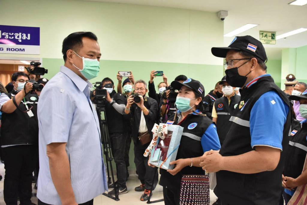 จึงเป็นเหตุผลที่ผมมาในวันนี้ เพื่อนำวัคซีนป้องกันโควิด-19 ของซิโนแวค มามอบให้เจ้าหน้าที่ด่านหน้าในการปฏิบัติงาน ตำรวจ ทหาร บุคลากรทางการแพทย์ เจ้าหน้าที่สาธารณสุข และอาสาสมัครสาธารณสุขประจำหมู่บ้าน(อสม.) ที่เสียสละและร่วมใจกันดูแลประเทศไทยเรา ให้ปลอดภัยจากโควิด-19” นายอนุทิน กล่าว