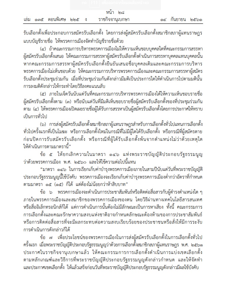 ข้อ7 ให้กกต.ดำเนินการแบ่งเขตเลือกตั้งตามหลักเกณฑ์และวิธีการที่พระราชบัญญัติประกอบรัฐธรรมนูญดังกล่าวกำหนด และให้จัดทำและประกาศเขตเลือกตั้ง ให้แล้วเสร็จก่อนวันที่พระราชบัญญัติประกอบรัฐธรรมนูญดังกล่าวมีผลใช้บังคับ