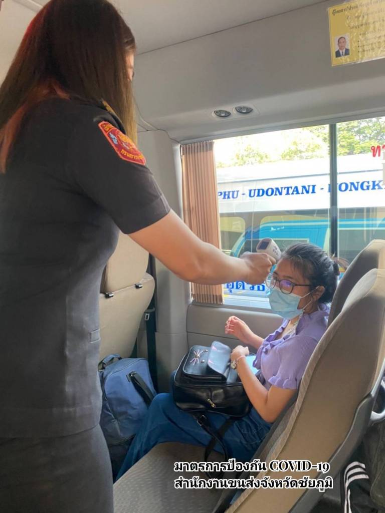 กรมการขนส่งทางบก ตรวจสอบและกำกับผู้ประกอบการขนส่ง พนักงานขับรถ พนักงานบริการให้ดำเนินการเข้มงวดในมาตรการป้องกันการแพร่ระบาดไวรัสเพิ่มมากขึ้น ตรวจวัดอุณหภูมิก่อนขึ้นรถ ล้างมือด้วยเจลแอลกอฮอล์ และสวมหน้ากากอนามัยตลอดการเดินทาง