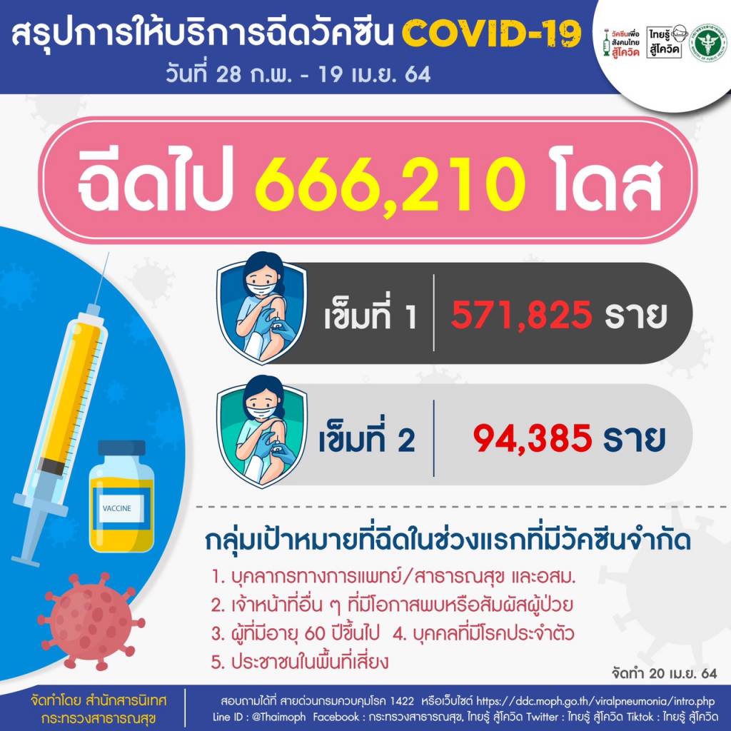ทั้งนี้ ช่วงที่ผ่านมาแม้พบผู้เสียชีวิตเพิ่มหลายราย แต่อัตราการเสียชีวิตระลอกใหม่นี้ยังไม่สูงไปกว่าระลอกก่อน โดยอัตราการเสียชีวิตระลอกแรกอยู่ที่ร้อยละ 1.42 ระลอกธันวาคม 2563 อัตราเสียชีวิตอยู่ที่ร้อยละ 0.14 และระลอกเมษายน 2564 คิดเป็นร้อยละ 0.09 อย่างไรก็ตาม ยังเป็นช่วงต้นของระลอกใหม่ และยังมีผู้ป่วยจำนวนมากที่อยู่ระหว่างการรักษา จึงคงต้องติดตามสถานการณ์ต่อไป ส่วนบุคลากรทางการแพทย์และสาธารณสุขด่านหน้าจำเป็นต้องได้รับวัคซีนในสถานการณ์ระบาด ซึ่งปลัดกระทรวงสาธารณสุขมีนโยบายให้เร่งรัดฉีดวัคซีนโควิด-19 แก่บุคลากรทางการแพทย์ และสาธารณสุขด่านหน้าให้ครบถ้วน 100% ภายในเดือนนี้