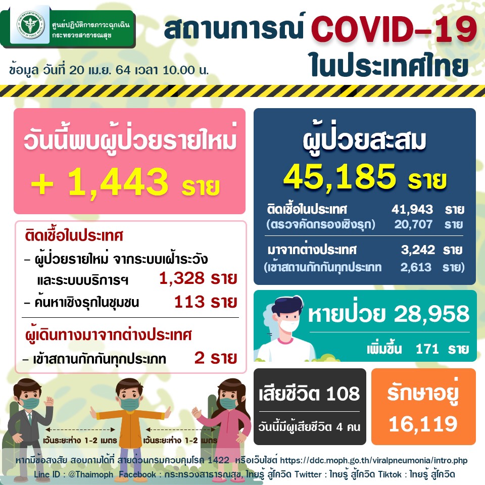 “การติดเชื้อในประเทศวันนี้มี 1,441 ราย กระจาย 68 จังหวัด จังหวัดที่มีผู้ติดเชื้อรายใหม่เกิน 100 ราย เหลือเพียงกรุงเทพฯ และเชียงใหม่ ส่วนตัวเลขที่ผู้ติดเชื้อสามารถแพร่กระจายเชื้อสู่ผู้อื่น (ค่า R0) ผ่านอัตราเร่งสูงสุดคือประมาณ 2 กว่าๆ มาแล้ว วันนี้ลดลงเหลือ 1.3 ถือว่าแนวโน้มการแพร่กระจายลดลง แต่ยังต้องช่วยกันควบคุมโรคเพื่อให้ค่า R0 ต่ำกว่า 1 จึงจะชะลอการระบาดลงได้ และการที่เชื้อกระจายไปทุกจังหวัดความเสี่ยงในการติดเชื้อจึงอยู่ใกล้ตัวมากกว่าที่คิด จึงขอให้ทุกคนต้องป้องกันตนเอง สวมหน้ากาก ล้างมือ เว้นระยะห่าง ไม่ไปสถานที่เสี่ยง ลดพฤติกรรมเสี่ยง ไม่ว่าจะเป็นเชื้อสายพันธุ์ไหนก็สามารถป้องกันได้ทั้งหมด” นายแพทย์เฉวตสรร กล่าว