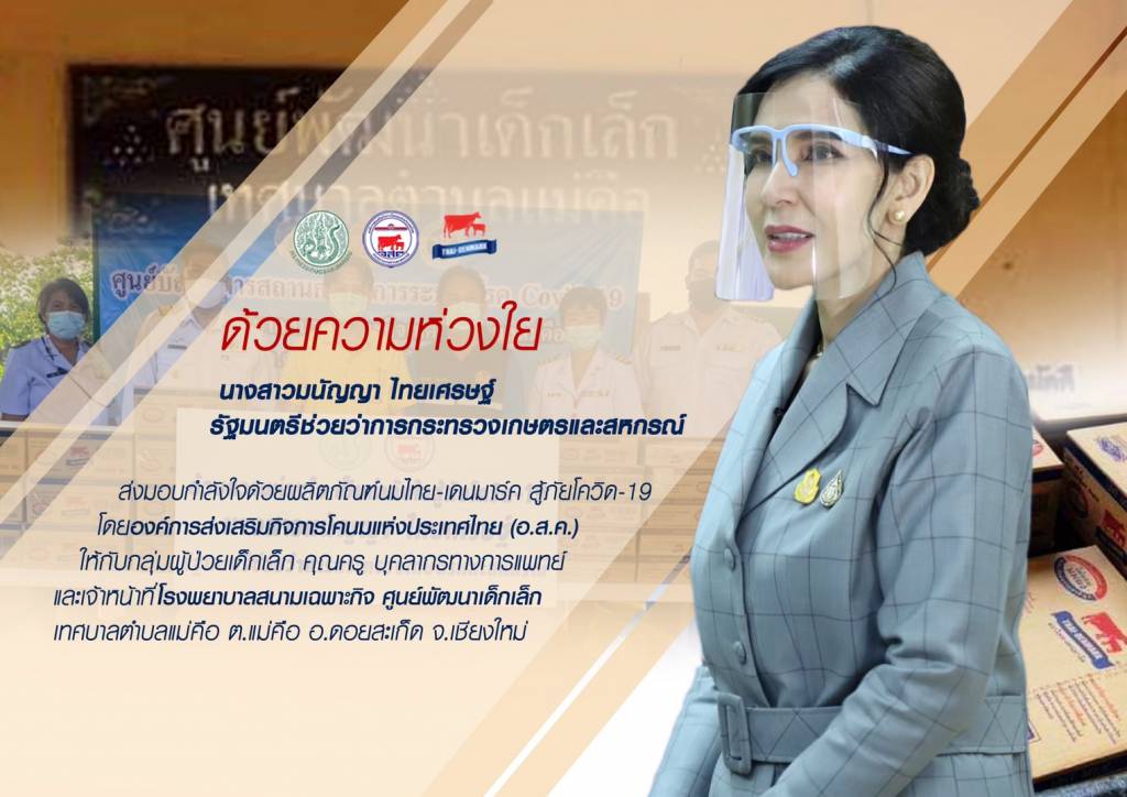 27 เมษายน 2564 เวลา 17:37"รมช.มนัญญา" ห่วงใยประชาชน มอบหมายให้ อสค. มอบผลิตภัณฑ์นมไทย-เดนมาร์ค แก่ รพ.สนามศูนย์พัฒนาเด็กเล็กเทศบาลตำบลแม่คือ จ.เชียงใหม่นางสาวมนัญญา ไทยเศรษฐ์ รัฐมนตรีช่วยว่าการกระทรวงเกษตรและสหกรณ์ มอบหมายให้ องค์การส่งเสริมกิจการโคนมแห่งประเทศไทย (อ.ส.ค.) ส่งมอบผลิตภัณฑ์นมไทย-เดนมาร์ค อาทิ นมยูเอชที โยเกิร์ต ให้กับโรงพยาบาลสนามศูนย์พัฒนาเด็กเล็กเทศบาลตำบลแม่คือ อำเภอดอยสะเก็ด จังหวัดเชียงใหม่ โดยโรงพยาบาลสนามดังกล่าว ได้มีกลุ่มผู้ป่วยเด็กเล็ก 'คลัสเตอร์ศูนย์เด็กเล็ก' จ.เชียงใหม่ มีเด็กติดโควิด 16 ราย อายุน้อยสุด 2 ขวบ รักษาตัวอยู่ในโรงพยาบาลสนามฯ แห่งนี้ เพื่อเป็นส่วนหนึ่งในการส่งมอบกำลังใจให้แก่ผู้ป่วย รวมถึงคุณครู บุคลากรทางการแพทย์ และเจ้าหน้าที่ ในช่วงสถานการณ์การแพร่ระบาดของโรคติดเชื้อไวรัสโควิด-19 ระลอก 3 ซึ่งการส่งมอบผลิตภัณฑ์นมไทย-เดนมาร์ค ครั้งนี้ ได้ปฏิบัติตามมาตรการป้องกันการแพร่ระบาดของเชื้อโควิด-19 อย่างเคร่งครัด แชร์บทความนี้: