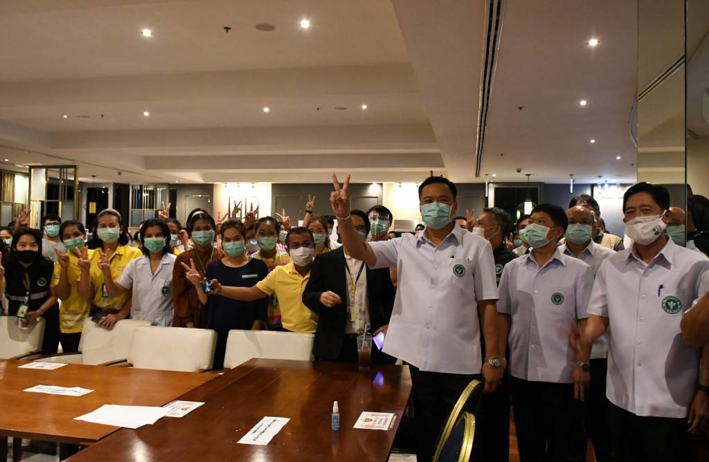 หลังการตรวจเยี่ยม นายอนุทิน กล่าวว่า กระทรวงสาธารณสุขเป็นห่วงพี่น้องประชาชน โดยเฉพาะในเรื่องเตียงผู้ป่วยโควิด-19 สิ่งที่ดีที่สุด คือ ให้ผู้ป่วยแสดงอาการ ต้องอยู่ใกล้แพทย์ พยาบาล นี่เป็นเหตุผลสำคัญที่ทำให้เกิดโรงพยาบาลบุษราคัม เพื่อเป็นจุดรองรับผู้ป่วยเกณฑ์สีเหลืองมาไว้ใกล้หมอ ขอย้ำว่า ที่นี่ไม่ใช่โรงพยาบาลสนาม ที่นี่มีระบบการรักษาที่มีประสิทธิภาพ อย่างไรก็ตาม หากผู้ป่วยอาการหนักกว่าเกณฑ์สีเหลือง จะประสานส่งต่อให้โรงพยาบาลที่มีศักยภาพสูงกว่าทันที ซึ่งกระทรวงสาธารณสุขมีเครือข่ายอยู่ทั่วประเทศ และการบริการจัดการ จะให้ผู้ป่วยได้อยู่ใกล้บ้านเท่าที่จะทำได้