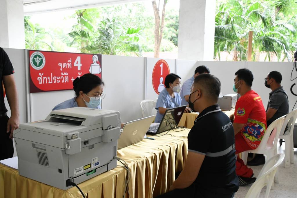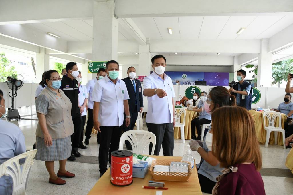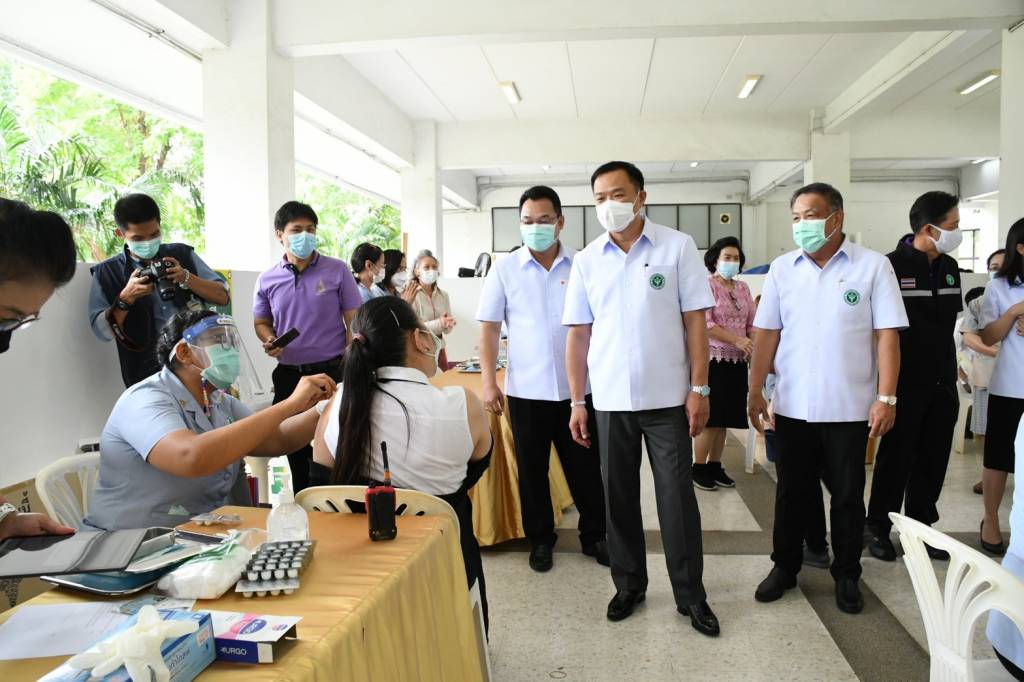 ด้านนายแพทย์เกียรติภูมิ วงศ์รจิต ปลัดกระทรวงสาธารณสุข กล่าวว่า ในการฉีดวัคซีนได้จัดขั้นตอนครบตามมาตรฐานกรมควบคุมโรค มีการเว้นระยะห่างทุกขั้นตอน จุดพักสังเกตอาการ 30 นาที พร้อมจุดปฐมพยาบาล ให้บริการได้วันละ 300 คน มีอาจารย์พยาบาลจากวิทยาลัยพยาบาลบรมราชชนนีกรุงเทพมหานคร วิทยาลัยพยาบาลบรมราชชนนี นพรัตน์วชิระ เป็นผู้ฉีดวัคซีน โดยระยะแรกฉีดให้กับบุคลากรทางการแพทย์และเจ้าหน้าที่ ในสำนักงานปลัดกระทรวงสาธารณสุข และกรมต่างๆ ที่ลงทะเบียนไว้ รวมทั้งหน่วยงาน องค์กรที่ขอรับการสนับสนุนล่วงหน้า หลังจากฉีดได้ครบแล้ว ในระยะต่อไปจะประสานกับสำนักงานสาธารณสุขจังหวัดนนทบุรี ส่งรายชื่อประชาชนในชุมชนรอบกระทรวงฯ ที่ลงทะเบียนกับโรงพยาบาลส่งเสริมสุขภาพตำบล เพื่อมารับการฉีดต่อไป