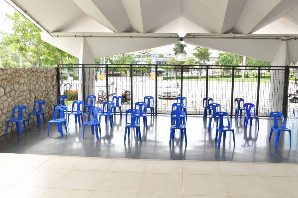สำหรับสถานที่ฉีดวัคซีนโควิด-19 กกท. จะตั้งขึ้นที่บริเวณพื้นที่ใช้สอยชั้นล่างของอินดอร์สเตเดี้ยม หัวหมาก ซึ่งภายในจะมีการทดสอบระบบการให้บริการวัคซีนตามขั้นตอนต่างๆ อาทิ จุดนั่งพักคอยก่อนลงทะเบียน จุดลงทะเบียน กรอกข้อมูลส่วนตัวเพื่อทำบัตรเข้ารับการฉีดวัคซีน จุดวัดความดันเพื่อตรวจสอบความพร้อมของร่างกาย จุดคัดกรองประวัติ จุดฉีดวัคซีน จุดสังเกตอาการ 30 นาที หลังรับการฉีดวัคซีน และออกหนังสือ รับรองการฉีดวัคซีน รวมไปถึงยังมีรถพยาบาลประจำจุดฉีด หากเกิดอาการข้างเคียงที่รุนแรง ทางทีมแพทย์ และ พยาบาล จะทำการรักษาและนำส่งโรงพยาบาลใกล้เคียงทันที