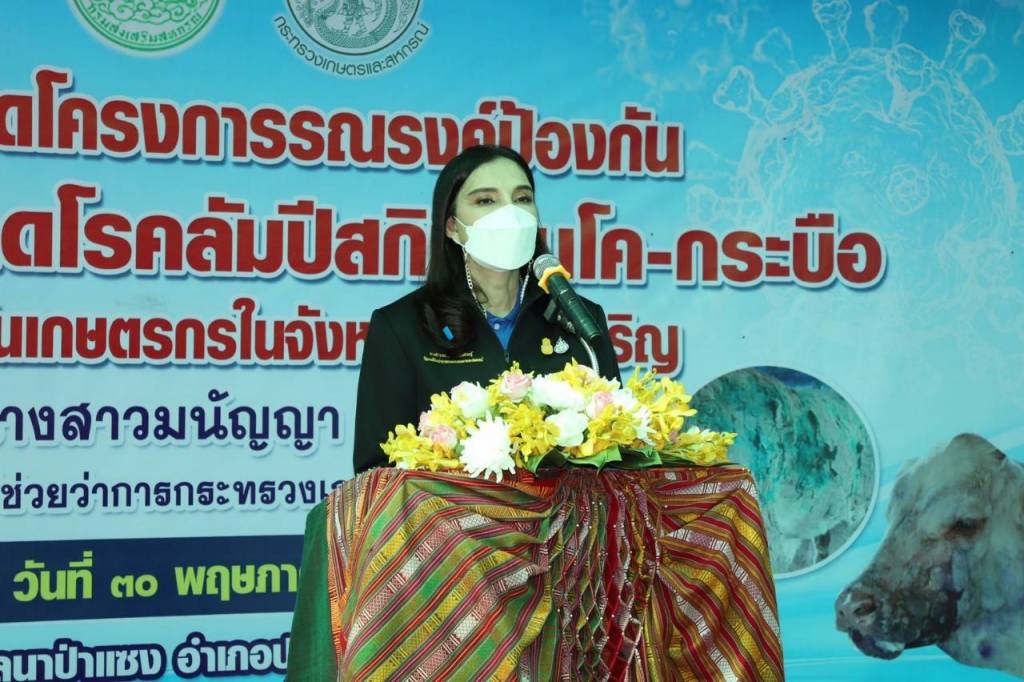 31 พฤษภาคม 2564 เวลา 06:34“รมช.มนัญญา” ลงพื้นที่เยี่ยมชมเกษตรกร พร้อมพร้อมมอบเวชภัณฑ์ให้แก่เกษตรกร ตลอดจนออกมาตรการเข้มงวด พร้อมกำชับหน่วยงานที่เกี่ยวข้องเร่งแก้ไขปัญหาการควบคุมโรคอย่างเร่งด่วน และปล่อยขบวบรถพ่นยาฆ่าเชื้อวันที่ 30 พ.ค. 2564 นางสาวมนัญญา ไทยเศรษฐ์ รัฐมนตรีช่วยว่าการกระทรวงเกษตรและสหกรณ์ เป็นประธานพิธีเปิด “โครงการรณรงค์ป้องกันโรคลัมปี สกิน” (Lumpy Skin Disease) ณ ฟาร์มโค นายสนธยา โสระเวช หมู่ที่ 3 ต.นาป่าแซง อ.ทุมราชวงศา จ.อำนาจเจริญ มอบสิ่งของเวชภัณฑ์/ยาฆ่าแมลงให้สมาชิกสหกรณ์ กลุ่มเกษตรกร พร้อมชมการฉีดพ่นยาฆ่าแมลง ก่อนปล่อยขบวนรถพ่นยาฆ่าเชื้อ สำนักงานปศุสัตว์จังหวัดอำนาจเจริญ เพื่อช่วยเหลือเกษตรกรที่ประสบปัญหา และเป็นการป้องกัน และเพื่อให้การควบคุม ป้องกัน และกำจัดโรคเป็นไปอย่างมีประสิทธิภาพ มากยิ่งขึ้น แชร์บทความนี้: