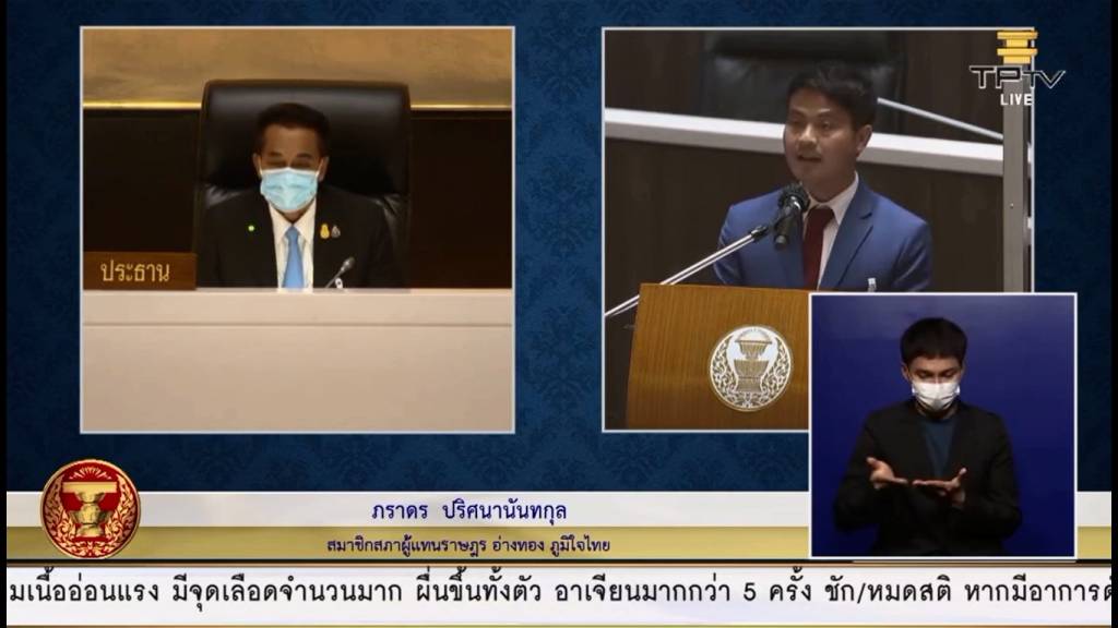 มากไปกว่านั้นในส่วนของสวัสดิการที่จะไปดูแลให้กับบุคลากรทางการแพทย์ทาง อสม. เองก็ดี บุคลากรทางการแพทย์ หมอ พยาบาลเองก็ดี เรื่องเงินเสี่ยงภัย ซึ่งครม. ก็ได้อนุมัติงบประมาณไปแล้วตั้งแต่ปี 63 ตั้งแต่ covid เกิดขึ้นใหม่ๆ ครม. อนุมัติงบประมาณไปแล้ว วันนี้ปีกว่าแล้ว บุคลกรทางการแพทย์ยังไม่ได้รับการจัดสรรงบประมาณเงินค่าเสี่ยงภัยให้กับเขาเลย การประกันชีวิตให้กับบุคลากรทางการแพทย์เช่นเดียวกัน ปีที่แล้วมีการจัดสรรให้กับบุคลากรทางการแพทย์ทั้งหมดทำประกันชีวิต ปีนี้โชคดีที่มีบริษัทเอกชนมาบริจาคให้ แต่บริจาคให้กับบุคลากรทางการแพทย์เพียง 250,000 คนเท่านั้น เป็นเพียง 40% ของบุคลากรทางการแพทย์ทั้งหมด อสม. ไม่ต้องพูดถึง ปีที่แล้วทางท่านอนุทิน ชาญวีรกูล ได้ไปหาผู้บริจาคเช่นเดียวกัน ไปทำประกันให้กับพี่น้อง อสม. ทั้งประเทศ ปีนี้งบส่วนนี้ไม่ได้ถูกจัดสรรเอาไว้ในกระทรวงสาธารณสุขเลยแม้แต่บาทเดียว