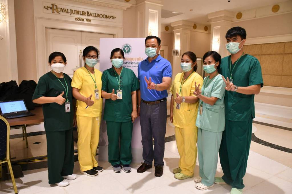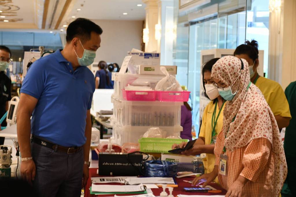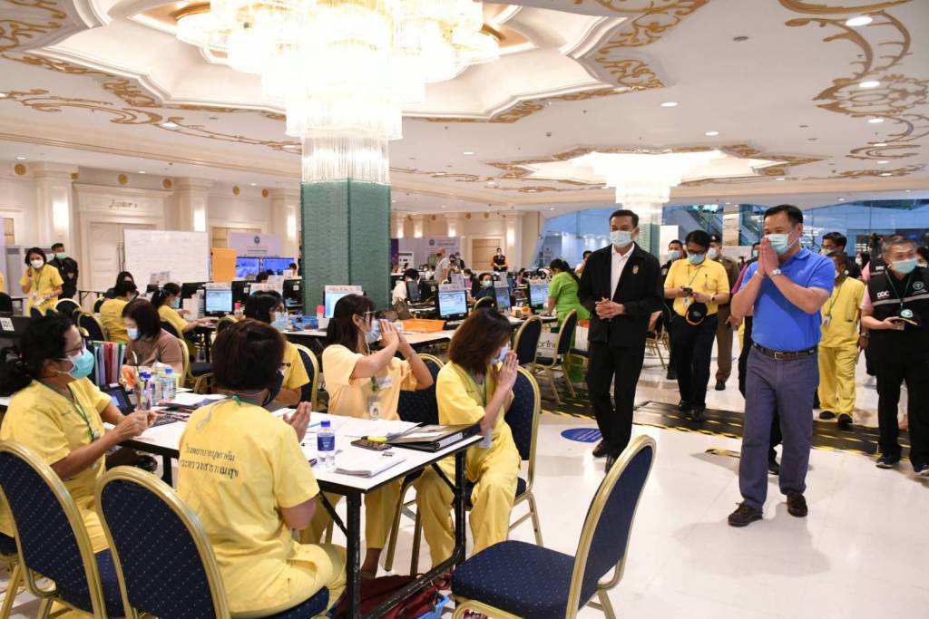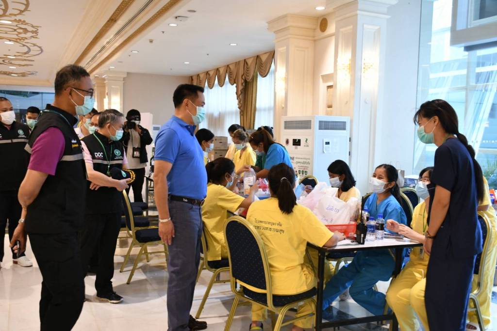 ระหว่างตรวจเยี่ยม นายอนุทิน ให้สัมภาณ์ผู้สื่อข่าวว่า ปัจจจุบัน เปิดใช้งานโรงพยาบาลไปแล้ว 2 เฟส รองรับผู้ป่วยได้กว่า 2,000 เตียง และพร้อมเปิดเฟส 3 - 4 เพิ่มเติม เพื่อรองรับสถานการณ์ในอนาคต ทั้งนี้ ตนอยากเห็นยอดการติดเชื้อที่ชะลอตัวลง และโรงพยาบาล หยุดการให้บริการที่เฟส 2 เท่านั้นส่วนเรื่องวัคซีน วัคซีน Sinovac เป็นวัคซีนที่ WHO ยอมรับในเรื่องประสิทธิภาพ ความปลอดภัย และไทย นำมาใช้เป็นวัคซีนเพื่อแก้ไขสถานการณ์ฉุกเฉิน ให้บริการไปแล้วจำนวนมาก ได้ผลเป็นที่น่าพอใจ