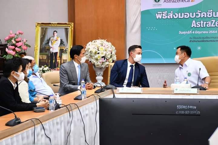 ผู้สื่อข่าวรายงานว่า วัคซีนฯ แอสตร้าเซนเนก้า ที่ได้รับในวันนี้ มีจำนวนทั้งสิ้น 1.8 ล้านโดส ผลิตในประเทศไทย โดยบริษัทสยามไบโอไซเอนซ์
