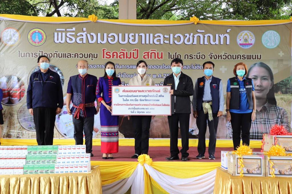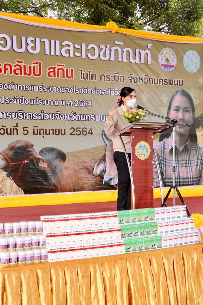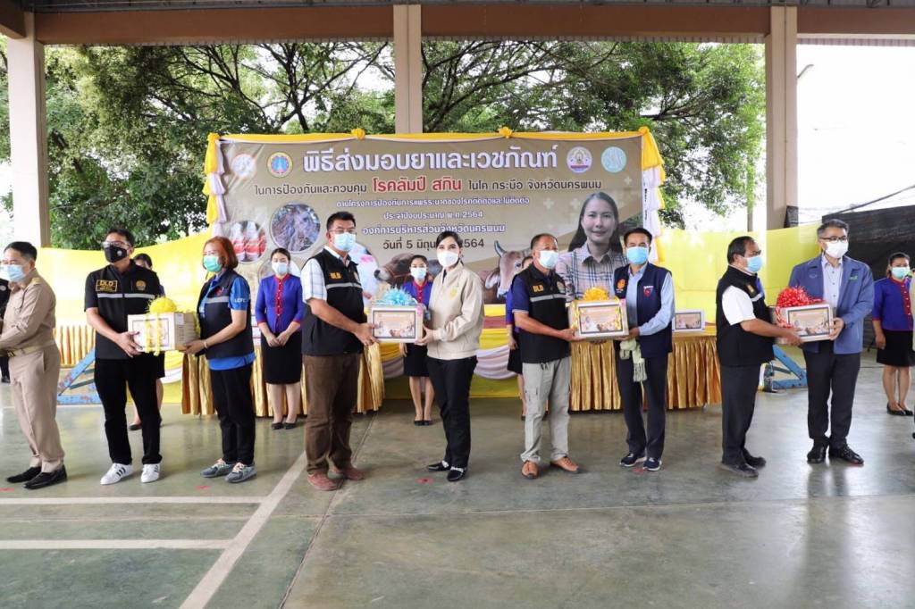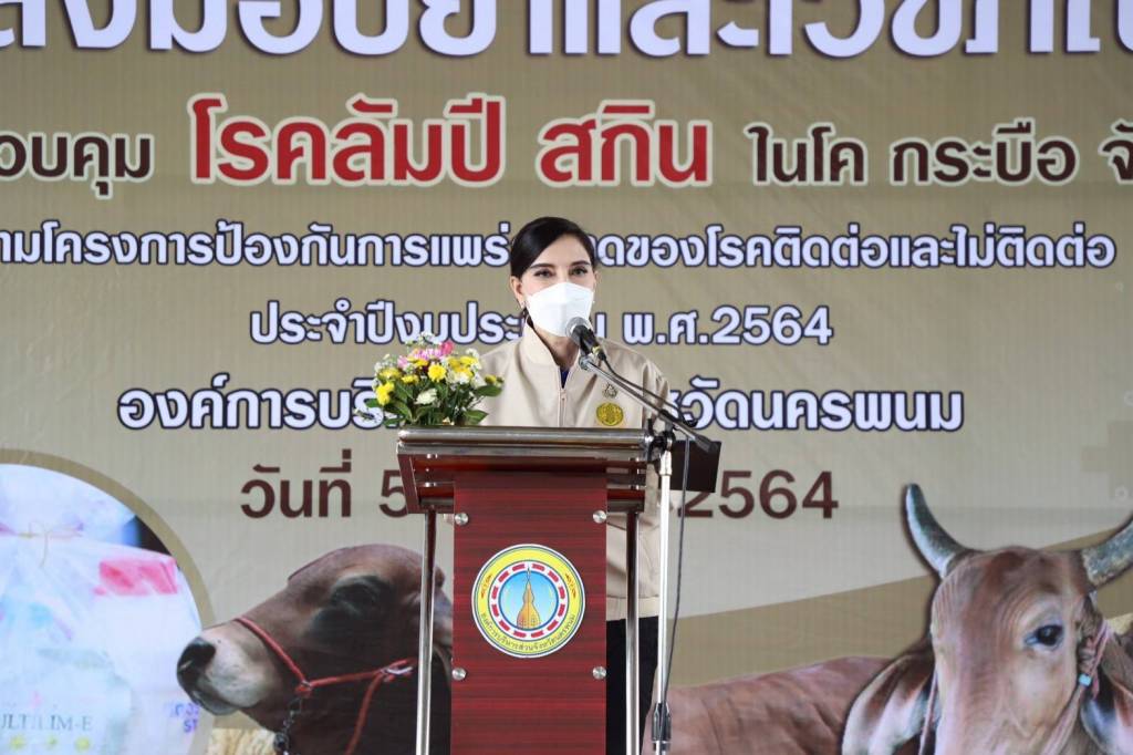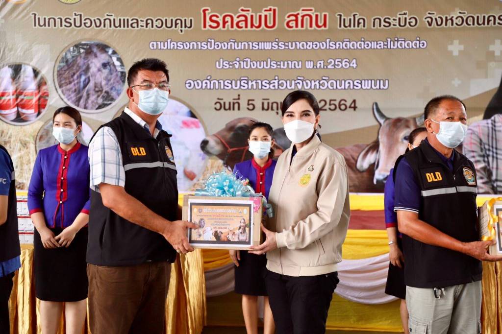 ทั้งนี้ รมช.มนัญญา ได้มีการมอบสิ่งของเวชภัณฑ์ ยาฆ่าแมลง ให้กับผู้แทนปศุสัตว์อำเภอ จำนวน ๑๒ อำเภอ ทั้งนี้ รมช.มนัญญากล่าวว่า กระทรวงเกษตรได้มีการติดตามสถานการณ์อย่างใกล้ชิด และกำชับให้หน่วยงานที่เกี่ยวข้องในจังหวัดนครพนม รีบเร่งหาแนวทางแก้ไขปัญหาการควบคุมโรคอุบัติใหม่นี้ อย่างเร่งด่วน ซึ่งขณะนี้ได้มีการสั่งซื้อวัคซีนจากประเทศเนเธอร์แลนด์ เพื่อให้การควบคุมป้องกันเป็นไปอย่างมีประสิทธิภาพ รวมทั้งเพื่อคลายความวิตกกังวลให้กับพี่น้องเกษตรกรผู้เลี้ยง โค-กระบือ ในจังหวัดนครพนม ณ สำนักงานองค์การบริหารส่วนจังหวัดนครพนม อ.เมือง จ.นครพนม